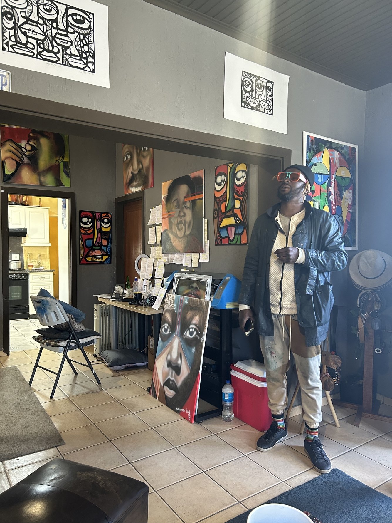 We’ve long admired Thabo Modise’s gallery-hopping experiences offered by his tour company, Toura Travel Therapy. Modise has a wonderful ability to talk about art in a way that’s inviting and illuminating, without the typical “art world speak" that can so easily alienate people. Modise’s  Soweto Art Tour, launched in June 2025, deepens his mission. Instead of visiting gallery spaces, we were taken into the heart of where artistic creation happens: artists’ studios and homes in Soweto. Along the way, Modise pointed out murals, statues, and the homes of Soweto icons, weaving a vibrant tapestry.