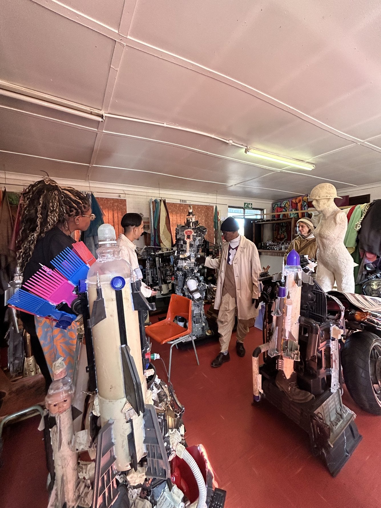 Our final stop was the Mofolo Art Centre in Mofolo Central, to visit the studio of legendary artist Kenny Nkosi. His found-object sculptures (made with trash he collects in the area) were a delight to behold in their various stages of completion. While Nkosi came up alongside the likes of internationally recognised names like Sam Nhlengethwa, whose practice was also based at Mofolo in the 1980s, he is lesser-known by comparison – but no less fascinating.