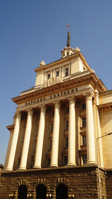 Until August 1990 this was the seat of the Central Committee of the Communist Party. In the summer of 1990 it was set on fire by crowds protesting against communist rule.Based on the designs of P. Zlatev, it was built by a co-op of architects which included Tsolov and the Soviet architect Blochin. Completed in 1953, it marks the top end of an area known as the Largo, a major showpiece of postwar socialist Sofia. Look up and you will notice something distinctly missing. The red star! This was removed after the collapse of the communist party. Now it is exhibited at the recently opened Museum of Socialist Art.
