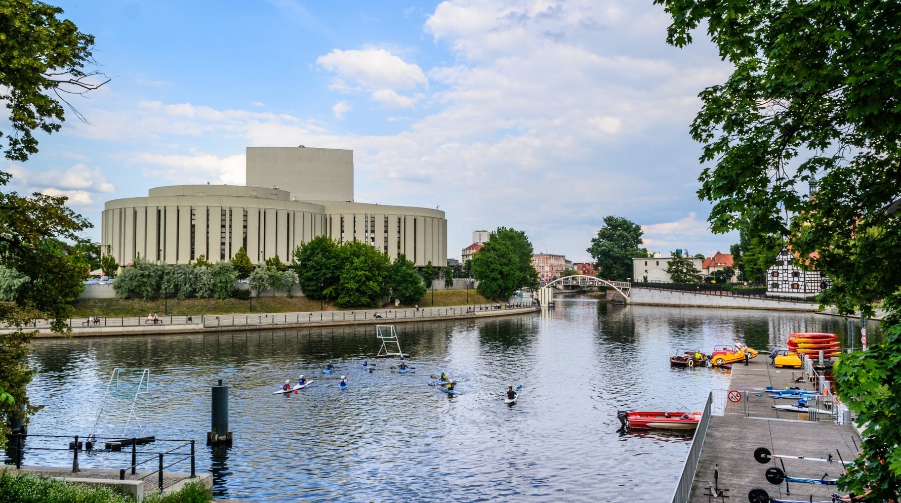 Beyond its wealth of cultural institutions, Bydgoszcz offers plenty of opportunities for active leisure, much of it shaped by water and greenery. The city’s rivers — especially the Brda — make kayaking and urban paddling a popular way to explore Bydgoszcz from a different perspective, drifting past historic buildings, river islands and modern developments alike. On land, locals head to Myślęcinek, one of the largest city parks in Poland, where walking and cycling trails, open-air recreation areas and seasonal attractions provide an easy escape into nature just minutes from the centre. Together, these spaces underline Bydgoszcz’s relaxed, outdoors-friendly character — a city where culture and leisure comfortably share the same rhythm.