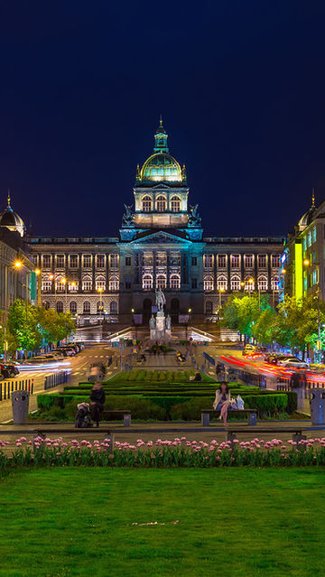 Václavské náměstí is actually a boulevard running down from the National Museum and the equestrian statue of Saint Wenceslas to Můstek, formerly the site of a city gate and drawbridge. This is where crowds traditionally come to demonstrate against their incompetent rulers, and this was where, in 1989, thousands gathered to shake their keys in celebration of the death of the Communist Party. Rows of shops, hotels (note the Art Nouveau glory of Hotel Europa) and nightclubs flank the pavements, and by night it can get a bit sleasy. Thankfully, there are plans to rid the square of cars, bury the highway in front of the museum in a tunnel and have tram N°11 make a come-back.