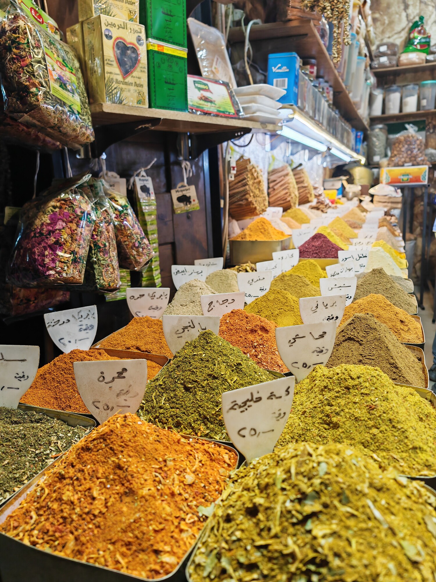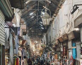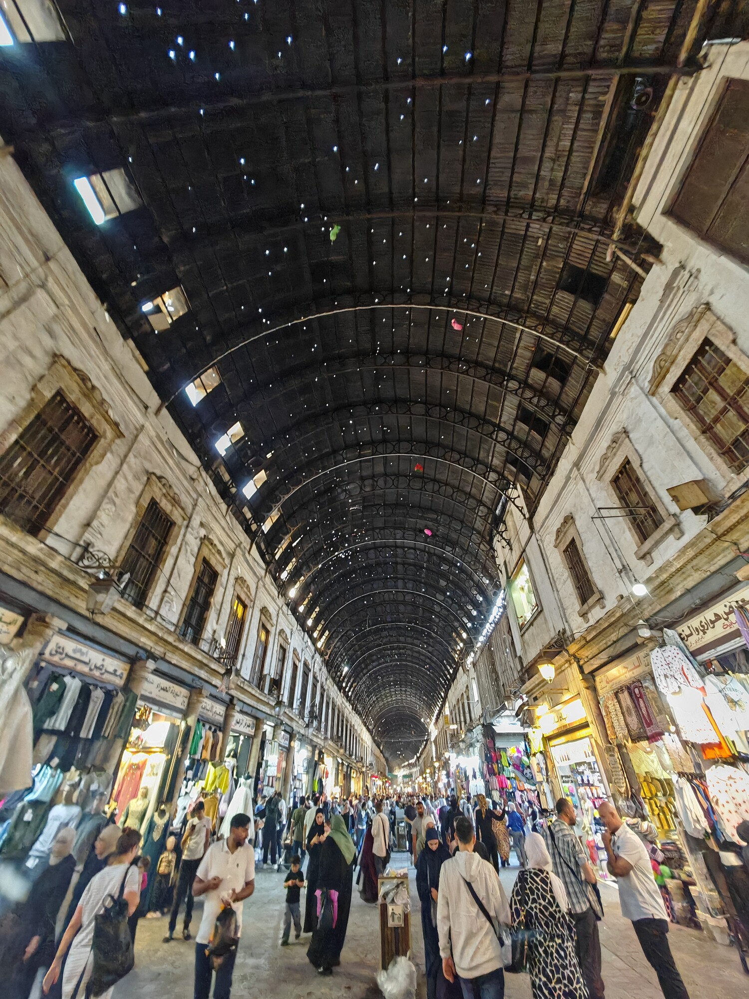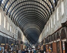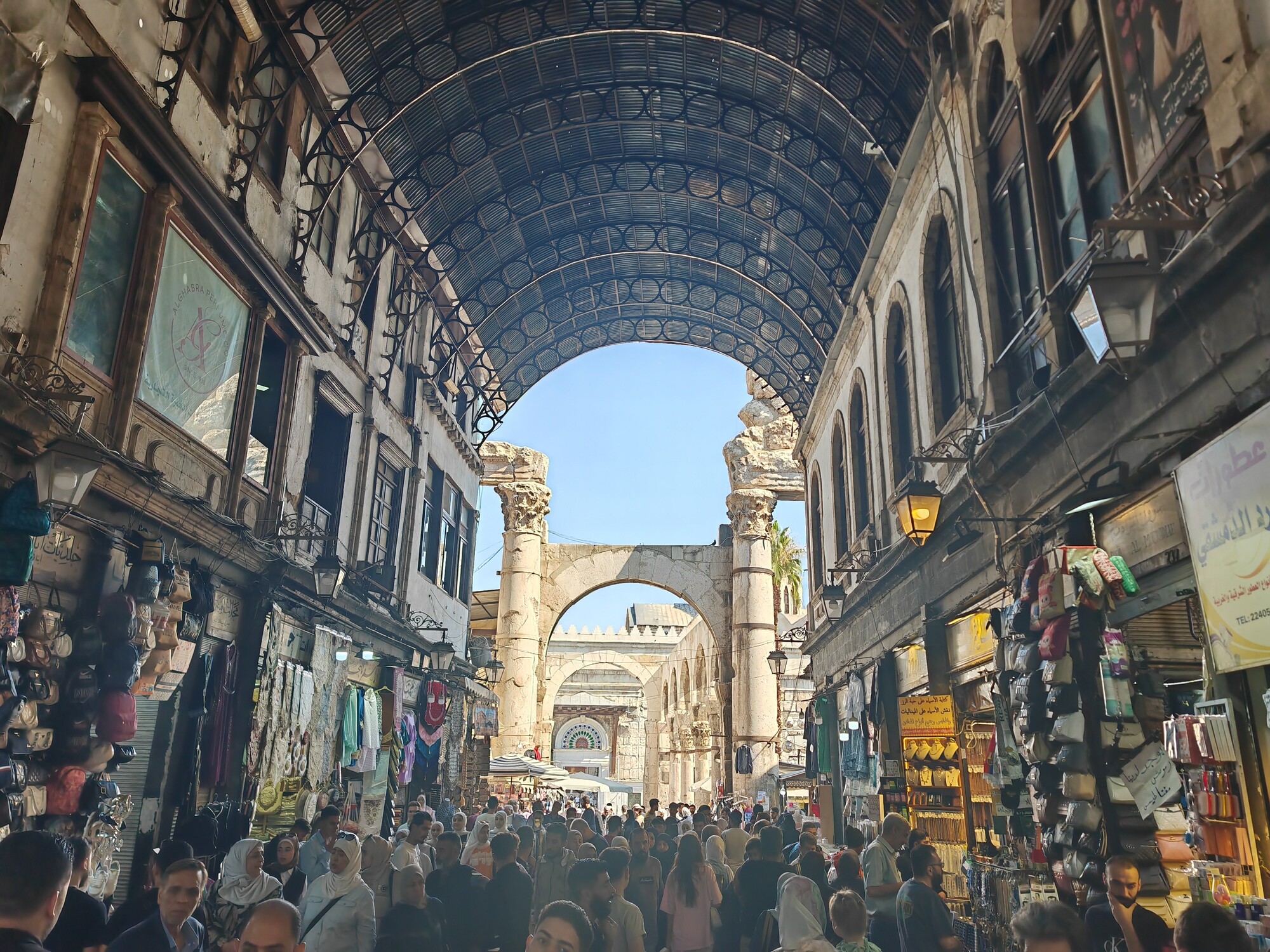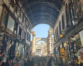 The Al-Hamidiyeh Souq is the beating heart of the old city. Built in the late 19th century under Ottoman Sultan Abdul Hamid II, this vaulted iron-roofed thoroughfare is more of a sensory assault than a simple shopping trip. The ceiling is famously peppered with tiny holes, the result of machine-gun fire during the 1925 Syrian Rebellion, which today create beautiful, dusty shafts of light that illuminate the chaos below. It is the kind of place where you can buy a wedding dress, a kilo of cumin, socks mocking the former dictator and a dried lizard, all within a ten-meter radius.