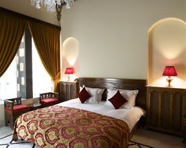 A fabulous boutique hotel in a splendid Ottoman mansion from 1836, the 'house of saffron' has been lovingly restored by a Swiss-Syrian couple. The 12 rooms are sumptuously furnished, decorated with traditional crafts and textiles, and come with a/c, heating and large bathrooms. Guests can relax and sip complimentary herbal tea in the central courtyard, with a fountain and fragrant citrus trees – smelling even better as, uniquely, the whole hotel is non-smoking. Dinner is served at the rooftop restaurant Veranda, with great old town views all round. Find Beit Zafran in the eastern part of the old town, behind St Teresa Church. Room rates vary from $210 for a single room to $230 for a double and $510 for the suite and can be booked through what is probably the best hotel website in town.