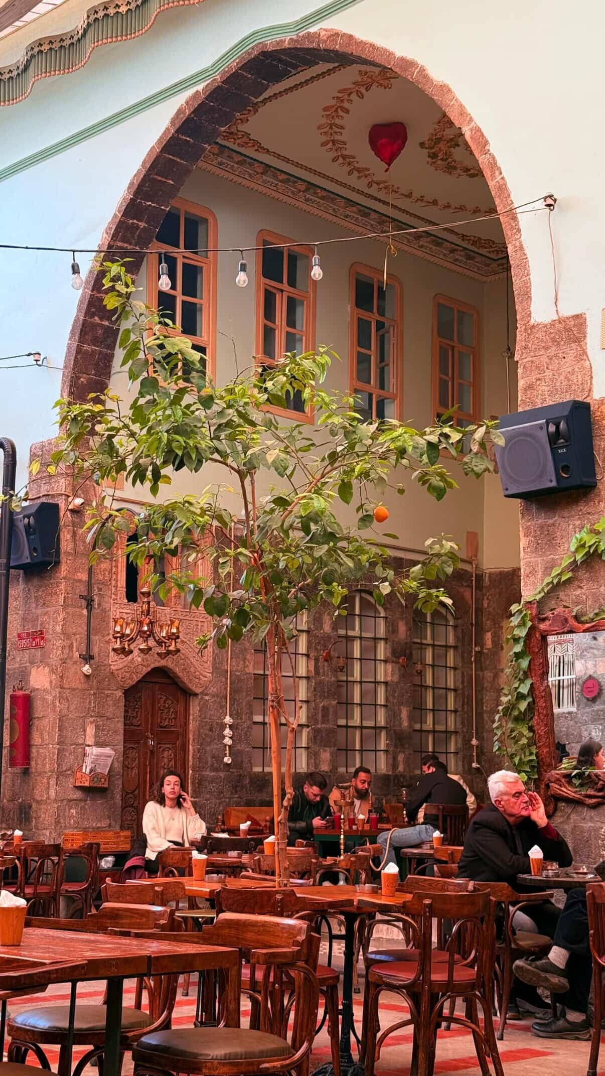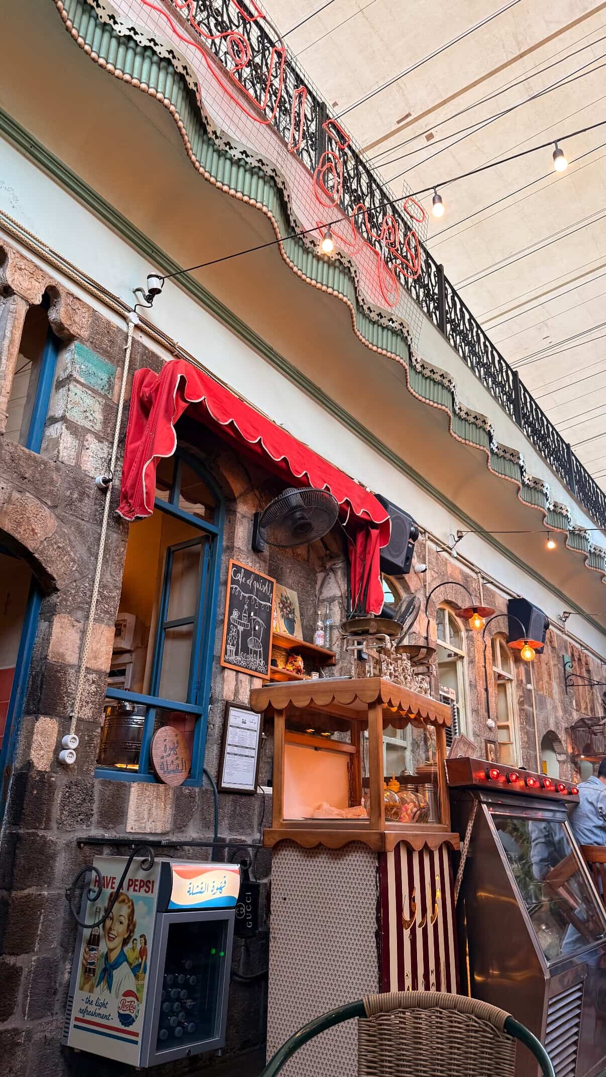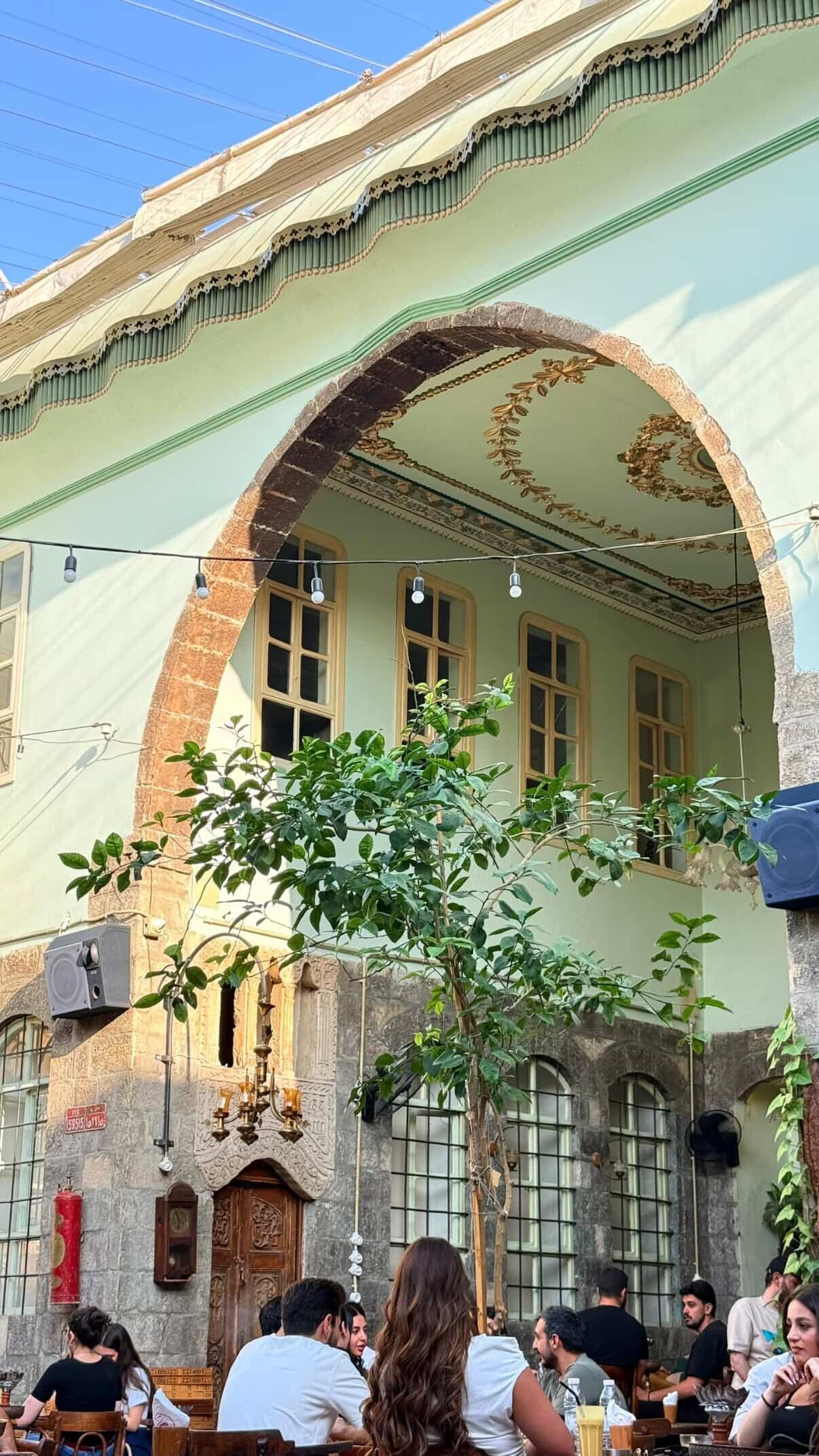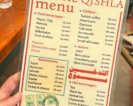 One of the most popular cafes in the old town. Al-Qishla consists of a large covered courtyard with a bubbling fountain overlooked by a traditional iwan arch. The relaxed atmosphere attracts all sorts of locals and foreigners to hang out and sample non-alcoholic drinks; we recommend an ice cold slushy bolo mint lemonade. Snacks like popcorn, crepes, and tasty sandwiches are available. Inside, there's also the lovely Gallery-Al-Qishla gift shop is a great place to browse for locally made crafts. Table reservations can be made via Instagram.