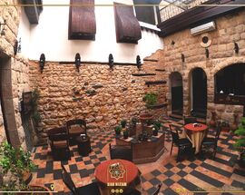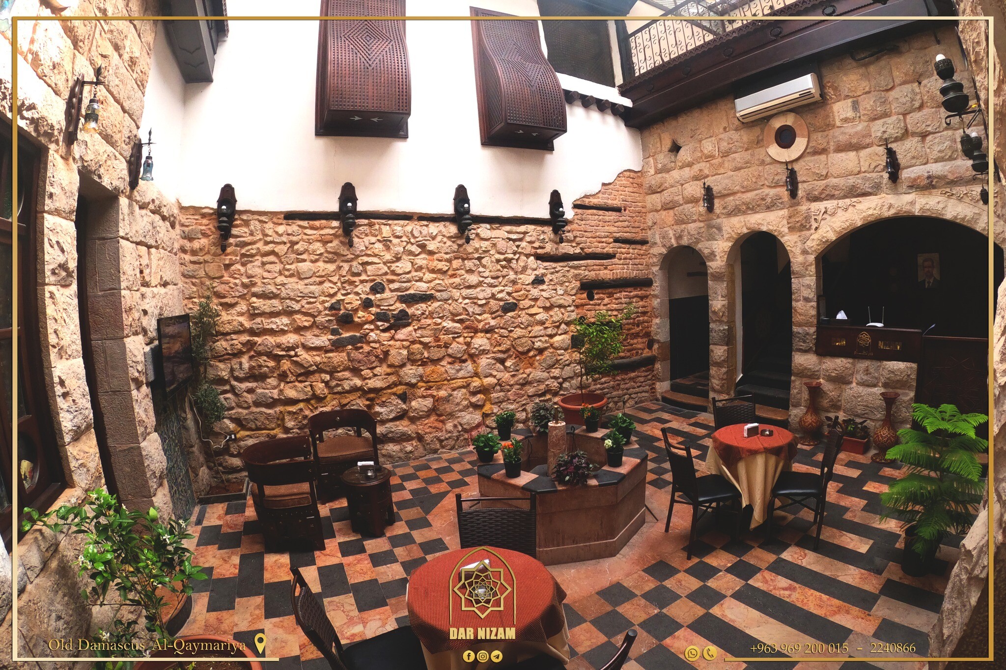 A calm boutique hotel in the heart of the old town with a small covered courtyard and high-ceilinged rooms in traditional style. A perfectly nice place to stay. Double rooms €60, suites €80, bookable via Halasyria and Syriabooking.