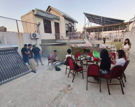 A cosy and well-regarded Chinese-run hostel in a historical house, found in the warren of narrow souk streets near the Al-Tawbah Mosque, just north of the old town. Dorm beds $15, private double rooms $35, all with use of a communal kitchen. Breakfast is not included, but can be arranged. Bike rental is available for $3 per day. It's best to contact the hostel in advance to reserve a bed or room.
