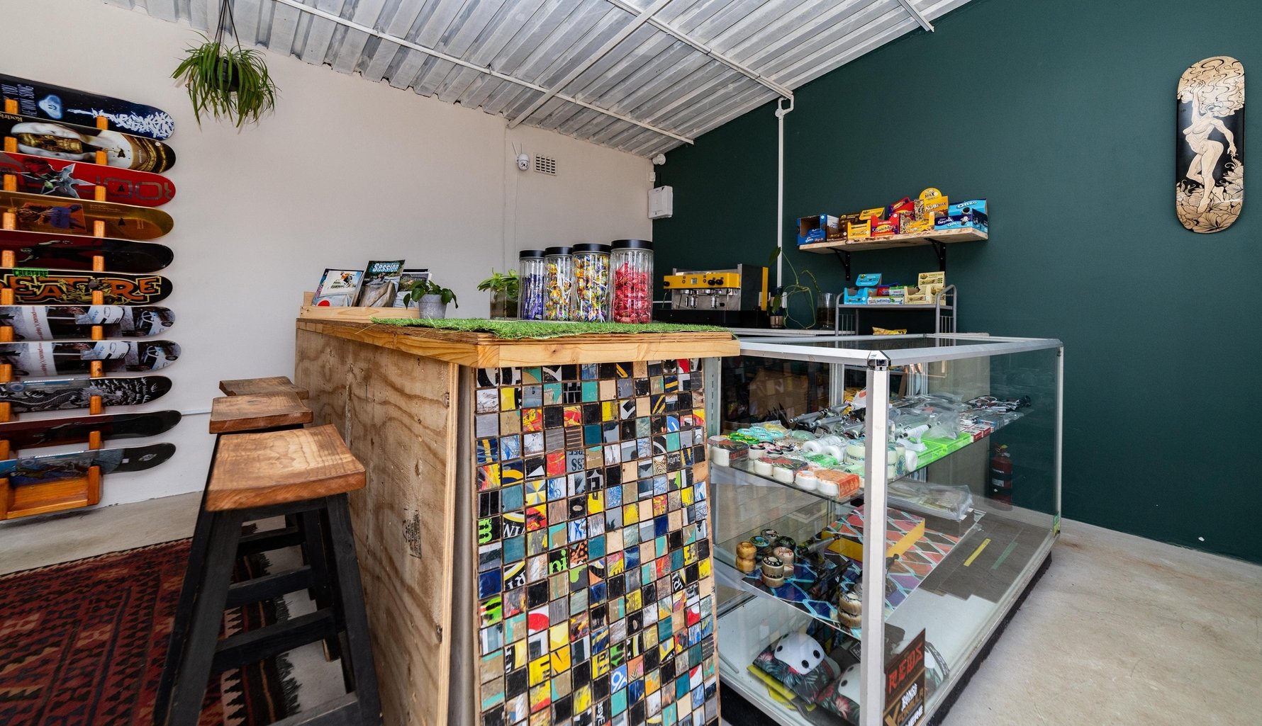 When skateboarding made its Olympic debut in 2020, it signalled a global shift, mirroring the renewed energy steadily gathering in Johannesburg’s scene. Backos secured the lease to the skatepark and surrounds from the council and has been tirelessly working to revamp it ever since, including building sponsored ramps, planting fruit trees, building his own arched windows, and creating a space for the country’s first and only girl-run skate shop, turning the space into a home for the community that built him.