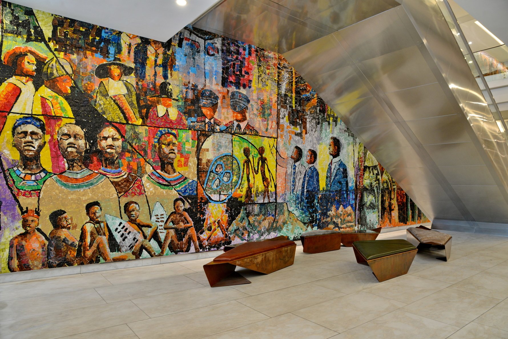 Mbongeni Buthelezi's floor-to-ceiling mural is one of our favourites. Photo: The Leonardo on Instagram.