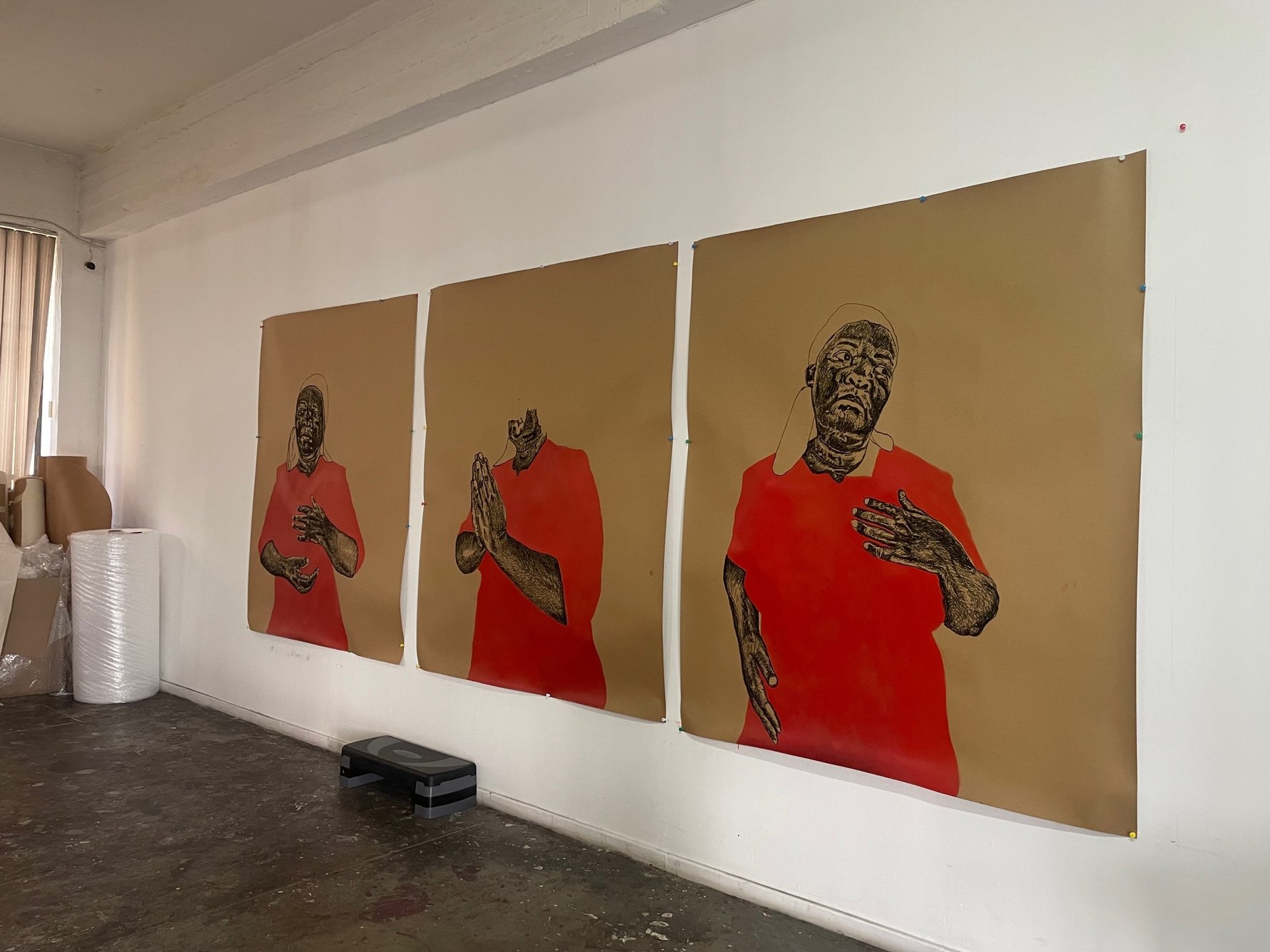 After a quick cup of coffee at Cleo's Grind, a café on the ground floor that make some rather tasty toasties, we met with artist Senzeni Marasela for a tour of Ellis House Art Building (November 2025).