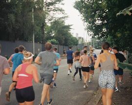 Run (or walk) under the purple canopies. Photo: Benchwarmers Runners Club on Instagram.