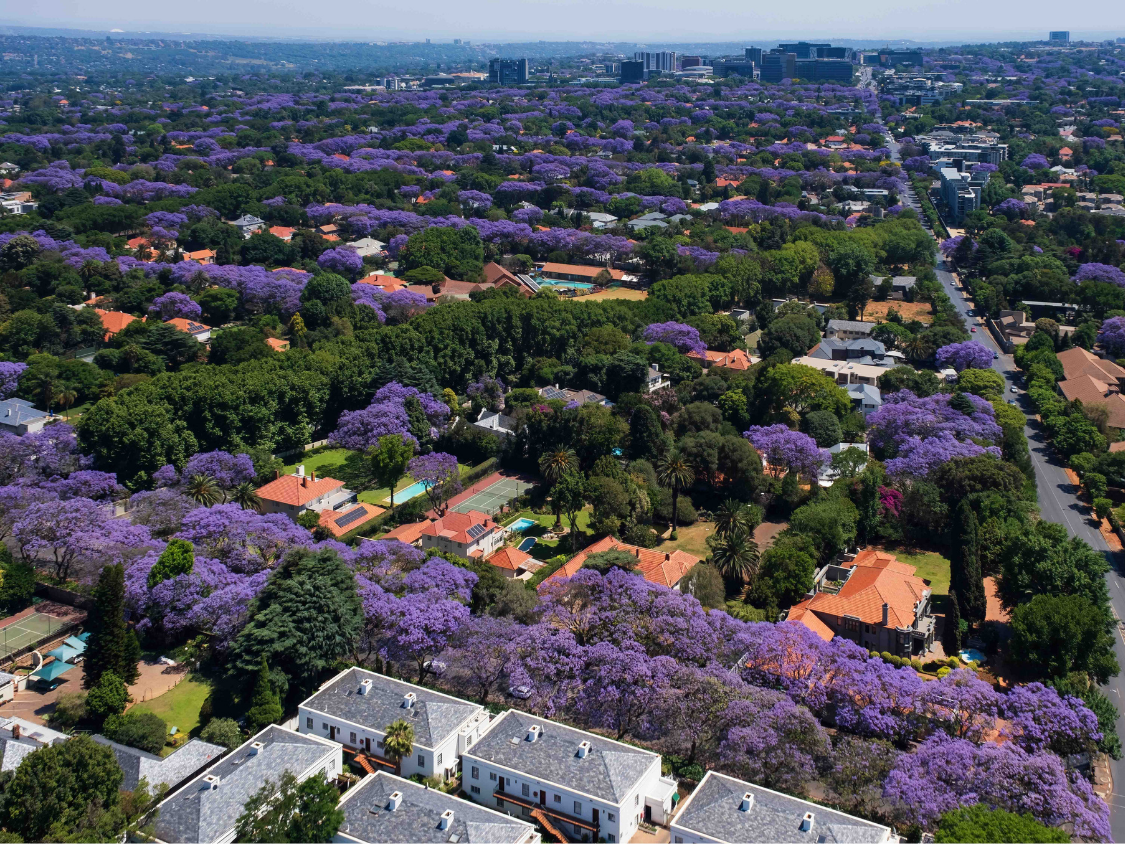 See Joburg's purple-lined streets from the skies. Photo: Clare Appleyard.