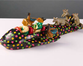We're ever a fan of Ardmore Ceramics, and they get a strong showing with tongue-in-cheek teapots, No Sorry After Death and A Little Fart in the Face, from Fée Halsted. One of our favourites from the whole collection was Bonakele (Bonnie) Ntshalintshali's Aeroplane candelabra with animals that would bring the perfect amount of whimsy to any candle-lit evening. With as bold a personality as Starcke, you would expect a few works of pop art and here, the watercolour II Fait Beau/Nice wea... ther by Helmut Starcke and the mixed-media works of Joe Tilson bring extra pizzazz and verve. These pair nicely with two Nigerian barber posters by Ahongan Komla, which feature the same print-like qualities.