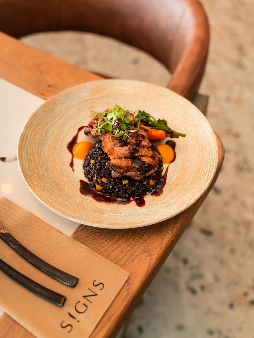 – S!gns is a new upmarket Afro-global fusion spot in Rivonia Crossing, Sandton. The maple-mustard salmon with celeriac mash and apple-radish-celery slaw sounds heavenly, and the milk tart brûlée promises a perfect finish to the night.