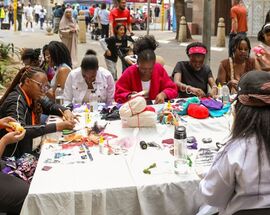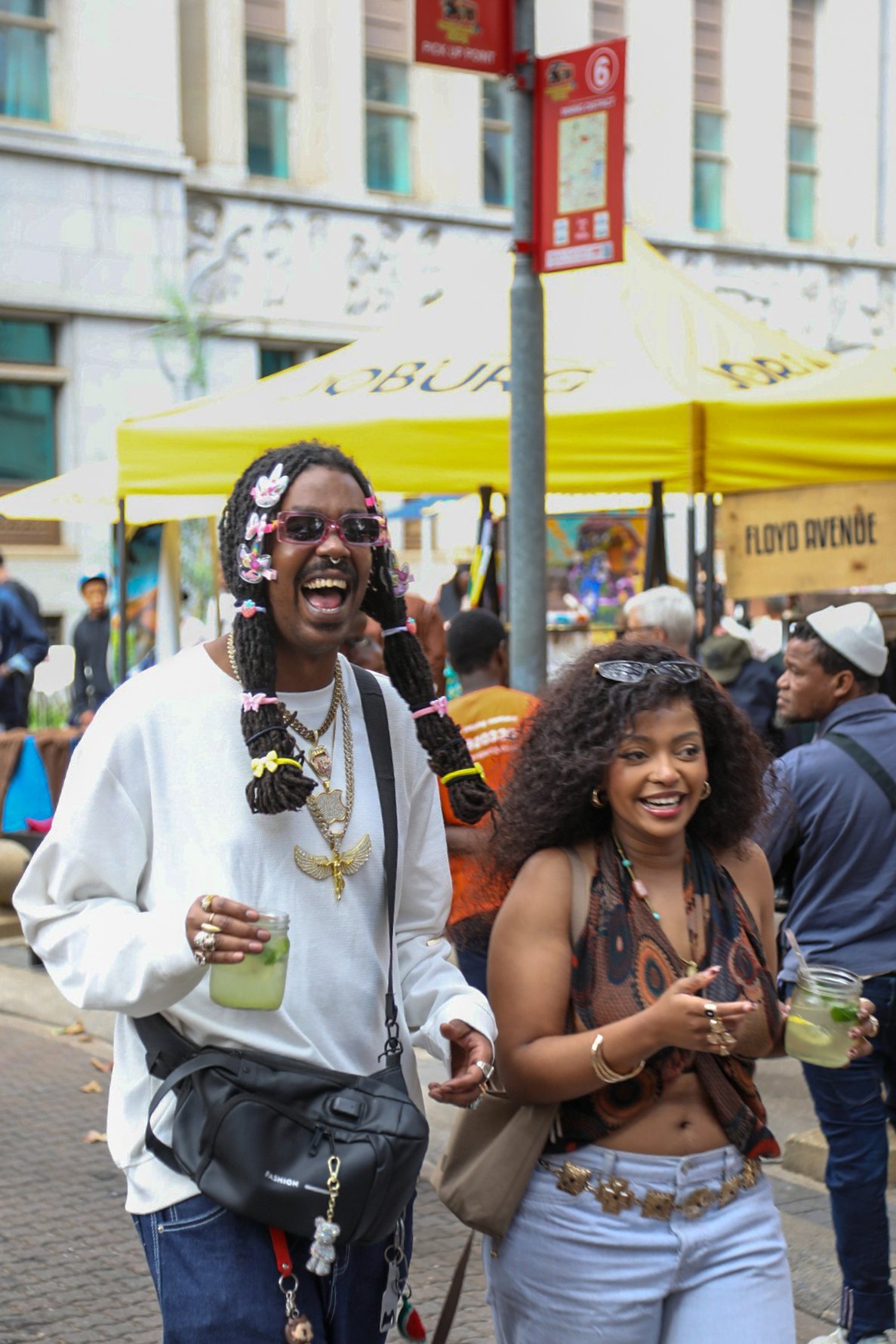 Main St Sundays made that question tangible. Led by Jozi My Jozi alongside the City of Johannesburg and Young Urbanists, the event was powered by a wide network of collaborators, volunteers, creatives and civic partners – many visible in Jozi My Jozi’s shirts and bibs, moving through the street all day to keep it alive and functioning. It was less a programmed festival than a co-ordinated ecosystem – a reminder of how many people it takes to temporarily remake a city street.Along the route, businesses like Sadie's Bistro fed the crowds, and installations, graffiti, photography and art interventions from Ntsikelelo Mzibomvu Art Studio, Spaza Art Gallery and FEDE Arthouse created a zone that was impossible to walk through without stopping. Standard Bank Gallery and Asisebenze Art Gallery extended the creative footprint, while Yoga With Drake, Bridge Books, Jozi Silent Book Club, Skateistan and Banditz Bicycle Club added layers of movement, rest and participation.