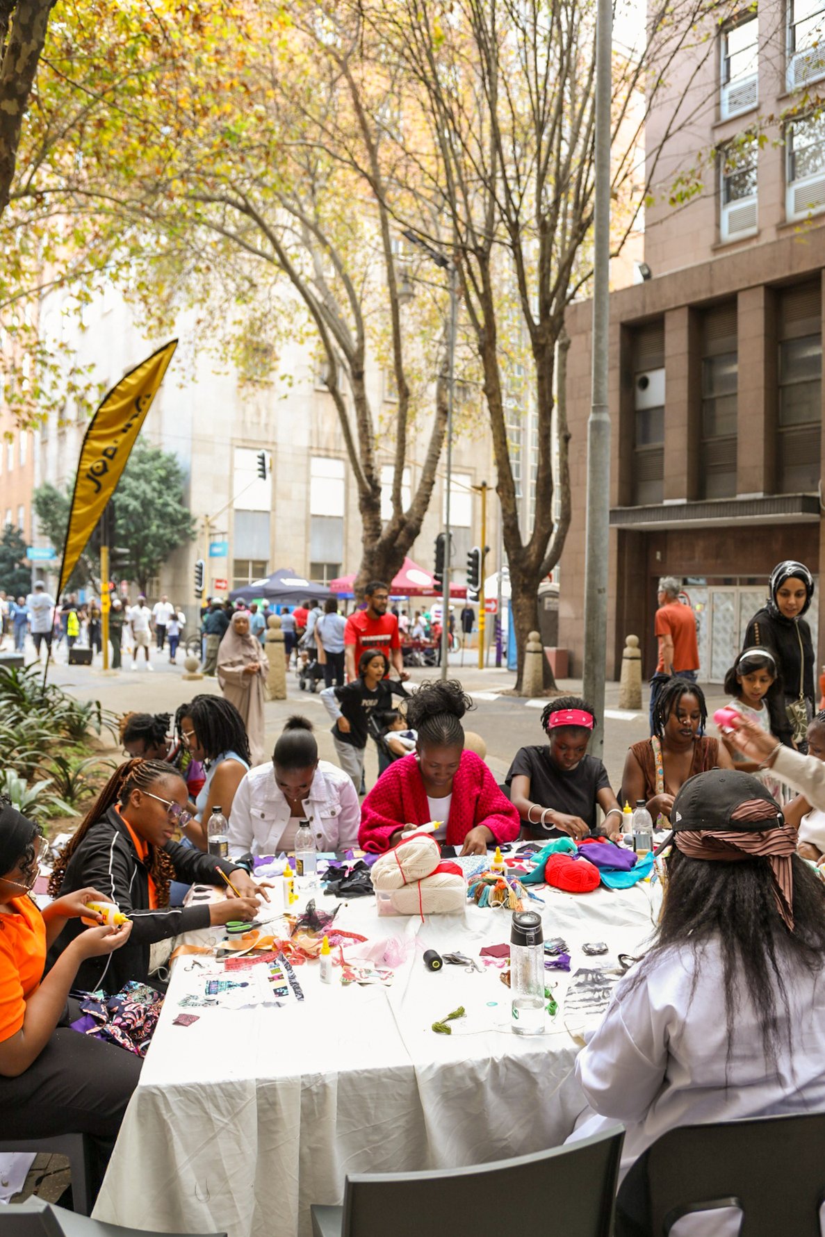 From early-morning runs and yoga sessions to skating, cycling and quiet reading corners, the street was filled with crowds from the start. Families gravitated to playful kids’ activities, creatives explored art and design pop-ups, and markets had us feeling like kids again at a school fair – giddy, wide eyed and happily bouncing between experiences. Curious wanderers moved through games, workshops and community activations. Live music kept the energy flowing, while food spots and gathering spaces encouraged people to slow down, mingle and stay a while.Main St Sundays also shifted perceptions around inner-city safety. Often framed as a barrier, it felt less present on the day – the street was active, welcoming and well managed, at times more so than comparable events in Rosebank or Sandton. People of all ages shared the space freely, reading, dancing and moving through it with ease.