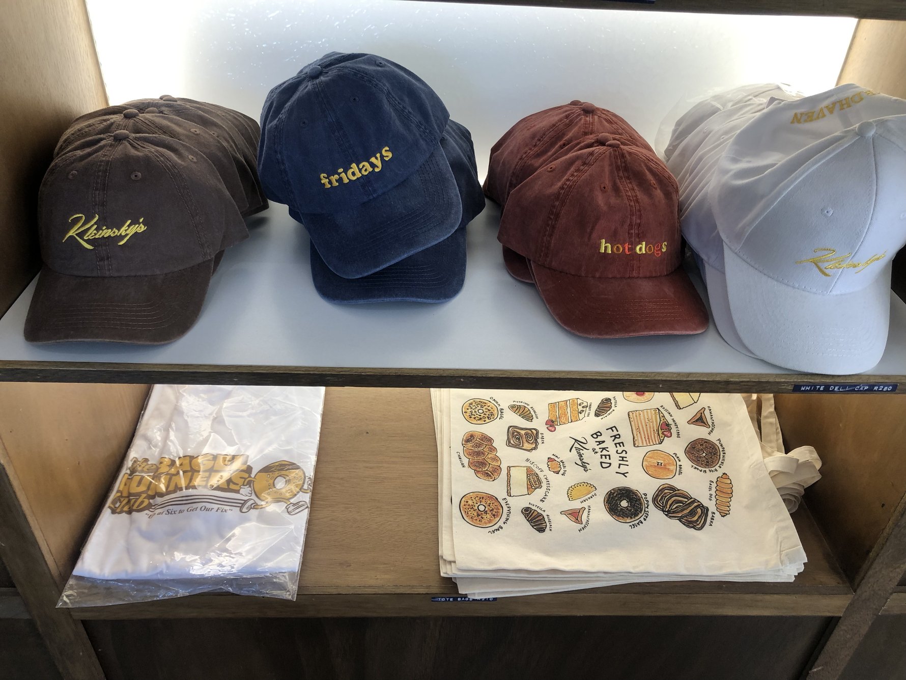 There’s also merchandise, from dad caps and illustrated tote bags to everything bagel seasoning for those who want to bring the Kleinsky’s experience home.