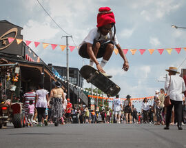 The Happening is a daytime-only event and the street is closed to traffic for the day. Free to attend and open to all, participation is encouraged.