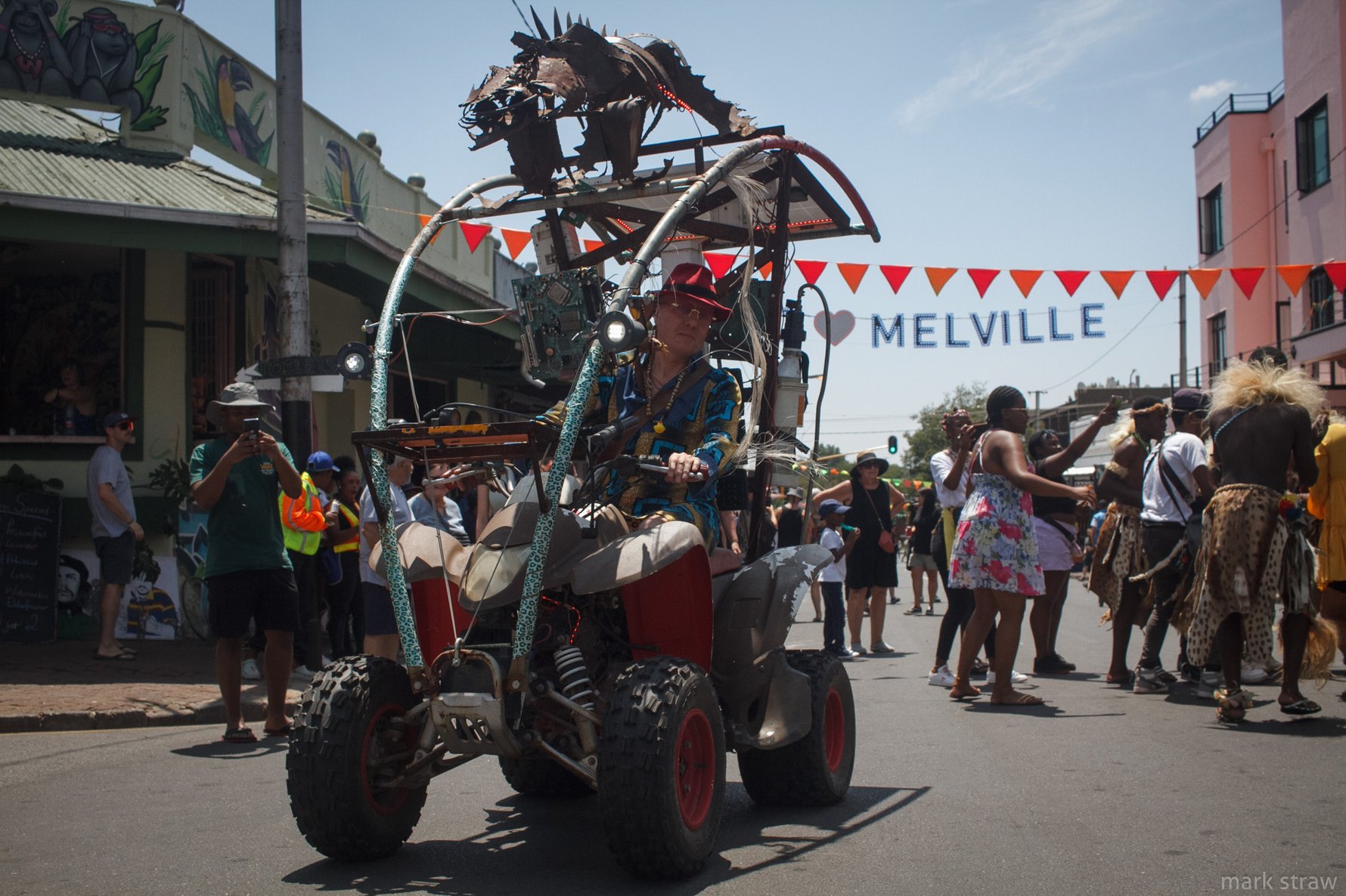 Street Art and Mutant Vehicles – Graffiti, public art installations and bizarre vehicles fill the street.