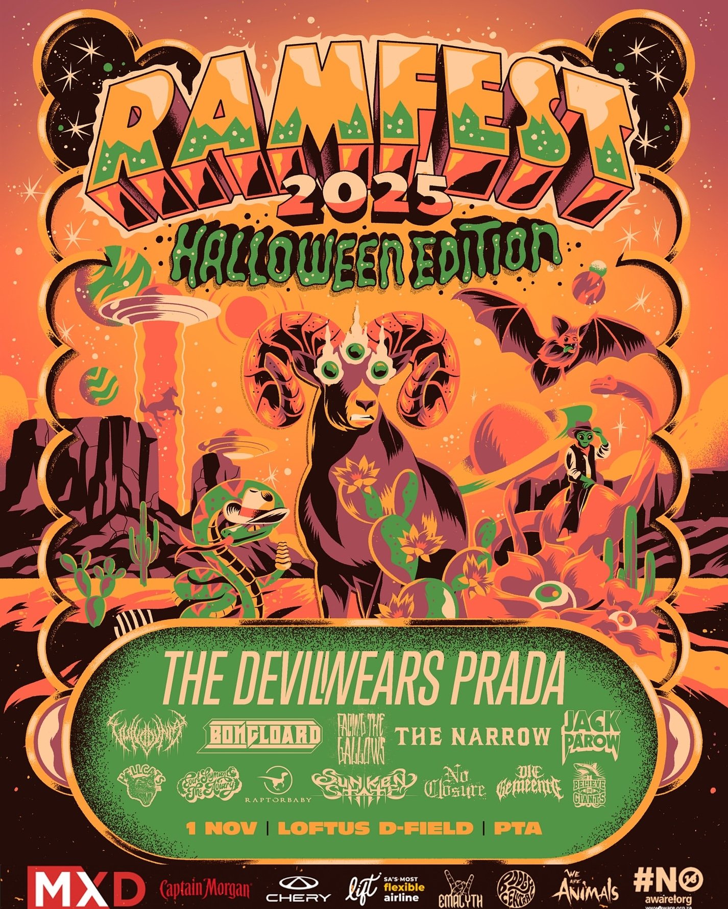 Sat, Nov 1 – Halloween continues into November with Ramfest's killer Halloween edition in Pretoria, bringing an electrifying lineup headlined by international acts The Devil Wears Prada and Bongloard. Costumes, loud music, and spin kicks guaranteed.