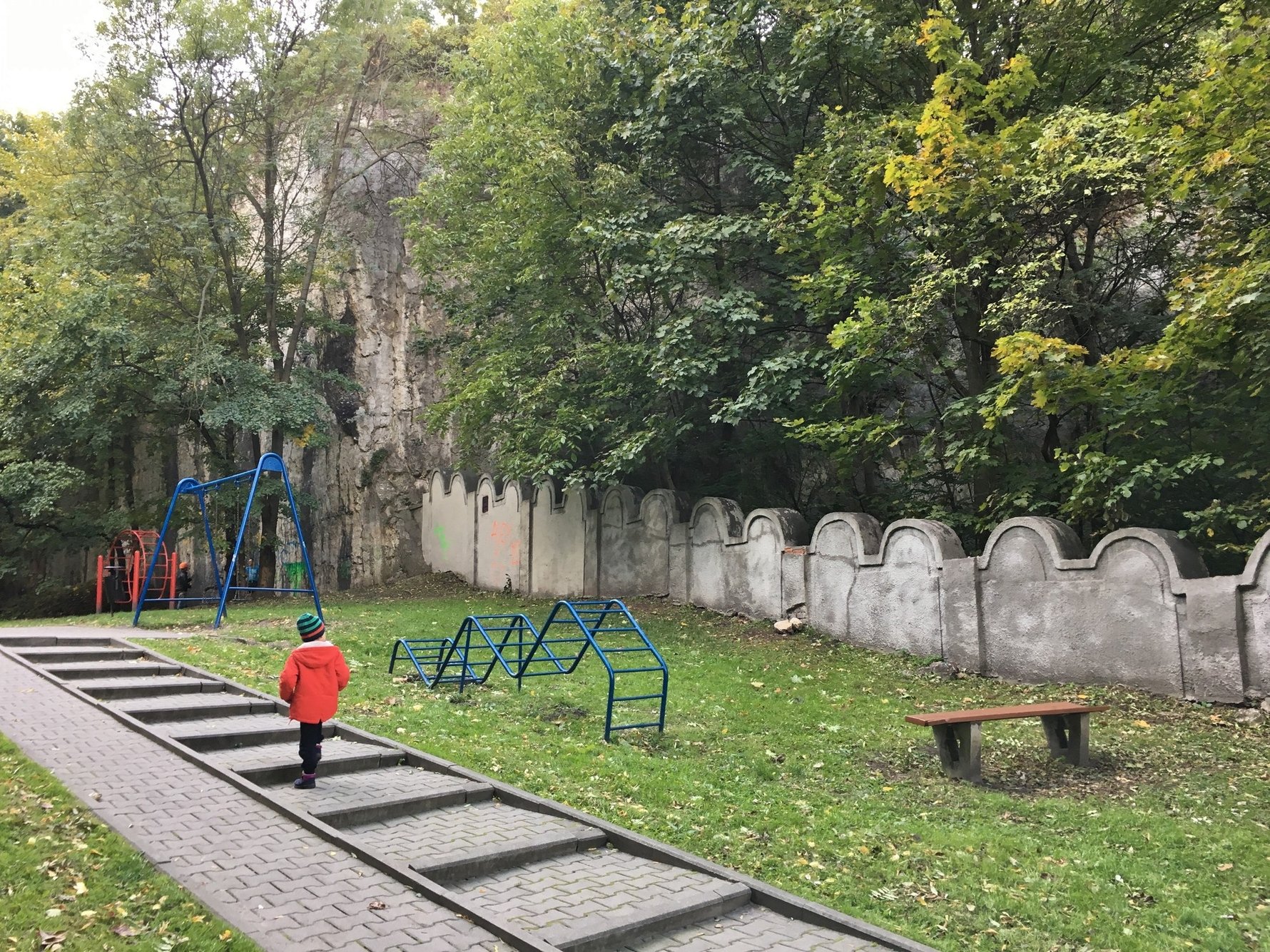Though less visible and less visited than the ghetto wall fragment on ul. Lwowska, this section of the original wall is longer and arguably more evocative. Discretely located in the small park beside the public high school at ul. Limanowskiego 60/62, the juxtaposition of playground equipment directly in front of a symbol of the Holocaust is truly striking. Though once in a state of crumbling disrepair, the wall has been recently patched up and restored. Those looking to continue their alternative tour of the area can try to climb the steep trail leading from the back of the playground, which leads straight up to the Old Podgórze Cemetery, to the right from which is the abandoned Fort Benedict and Lasota Hill.