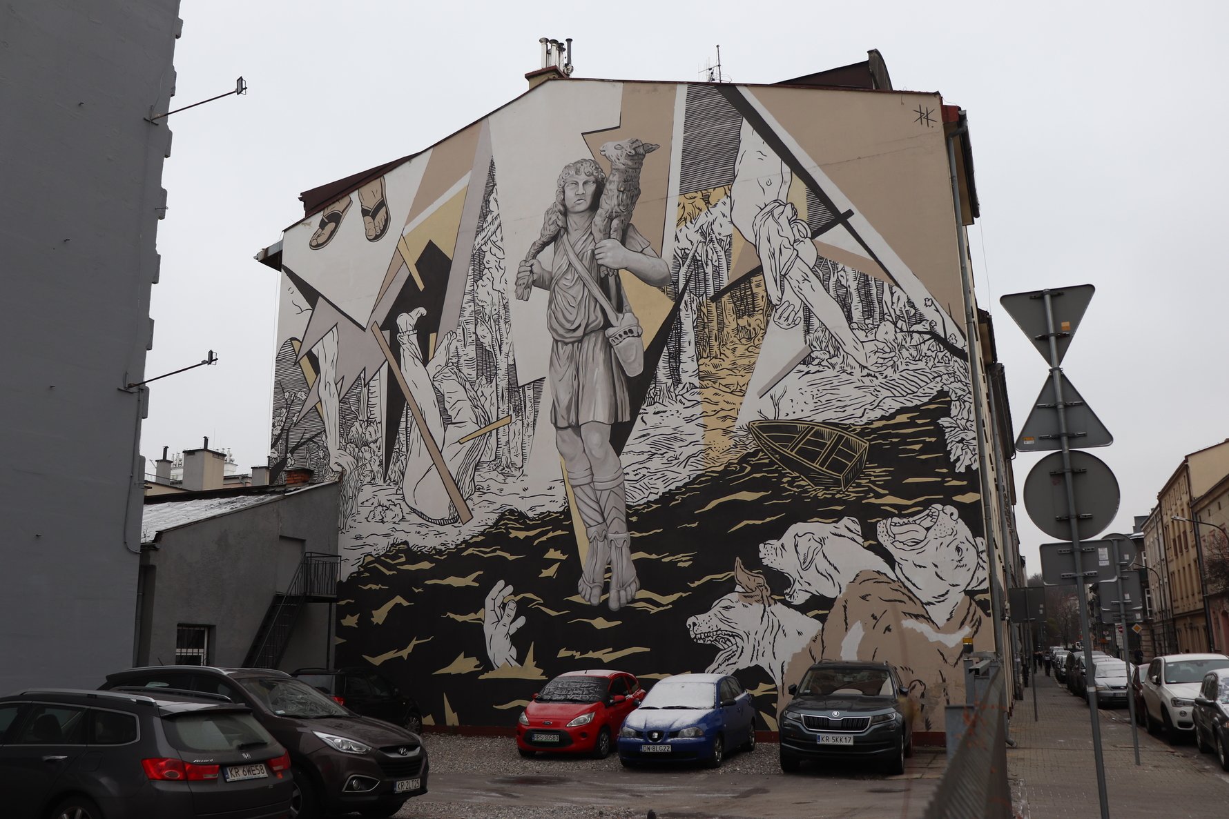 One of six such murals in various cities across Poland, this radiant mural celebrates the scientific accomplishments of Maria Skłodowska-Curi