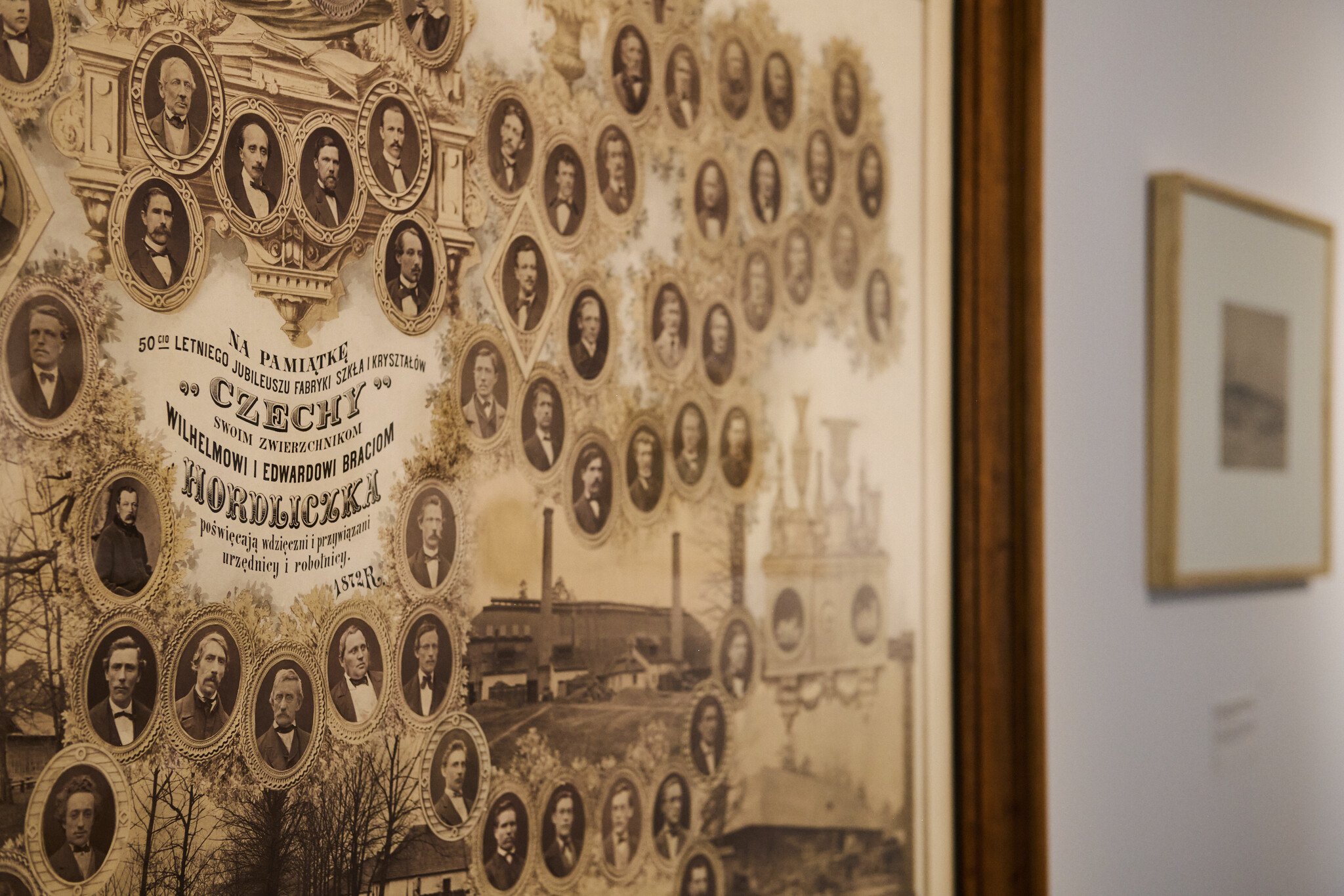 "In commemoration of..." – these words often appeared in photographs endowed with special, emotional value. Tableaux - photographic and pictorial compositions created for anniversaries, reunions, and anniversaries in the second half of the 19th century - were a popular form of recording places, people, and histories important to the community that commissioned them. This exhibit presents two exceptional tableaux created to commemorate the 50th and 80th anniversaries of the "Czechy" Glass and Crystal Factory in Trąbki, and to document not only its owners and employees but also the factory's architecture and products. The first, created by Konrad Brandel in 1872, was a gift from the officials and workers for the brothers Wilhelm and Edward Hordliczek, while the second, prepared in 1902 in Jadwiga Golcz's studio, was a tribute to the Reverend Edward Hordliczek.