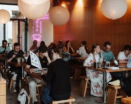 How did they do it? By making every bowl a work of art. Ramen People makes their own fresh alkaline noodles every day, they import many of their ingredients straight from Japan, and they change their menu constantly to incorporate local seasonal ingredients. With everything in its right place - nitamago eggs, menma bamboo shoots, shiitake mushrooms, mung bean kimchi, chashu pork and more (including yummy vegan versions) - the umami is addictive and Ramen People is now one of the trendiest places in town for work lunches, friend gatherings, family dinners (they have special bowls for kids), first dates - you name it. While ramen is the star of the show, RP also offers a range of other delicious authentic Japanese entrees and sides, teas, matcha drinks and sake. Combined some some killer graphics and a casual, stylish interior, this place is one of the buzziest restaurants in town. Oishi!