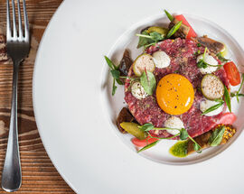 For the second course, try their traditional Polish rye-soup żurek. Move on to the main, where you can choose between dishes like beef cheeks and marinated schnitzel to name a few items.