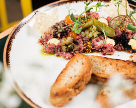 On their veg menu, enjoy gnocchi in a creamy mushroom sauce, light and tasty Thai curry, or a vegetable schnitzel. And don't worry, vegetarians, you won't miss out on the great burgers here: they have halloumi and Beyond burgers for non-meat eaters!