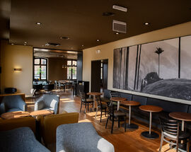 With a wide range of drinks (and regular seasonal additions to the menu), snacks and sandwiches, Starbucks is always a great go-to. And we're big fans of this locaiton for a few reasons. First, it's very spacious, with tons of comfy chairs and indoor sea