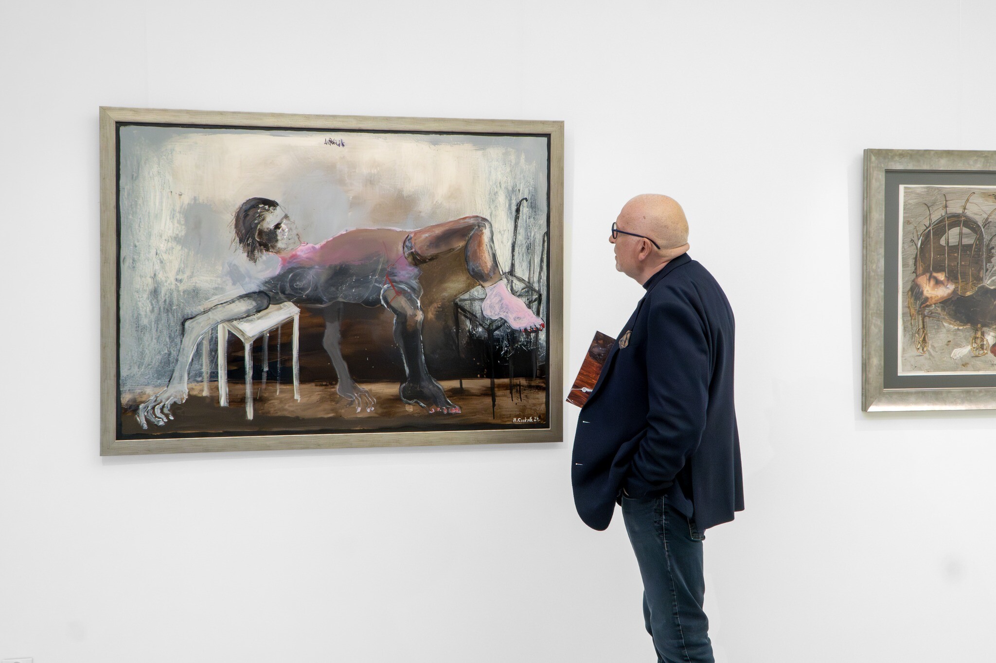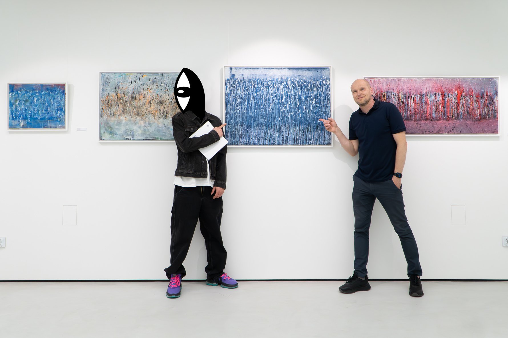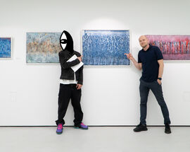 Local artist 'Noriaki' (left) at his 2025 solo exhibition at SZOKART.