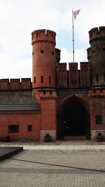 This impressive gate in the south-west of the city is all that remains of Fort Friedrichsburg which stood here from 1657 until the 1920s. The fort was originally built to protect Königsberg from the sea and was designed by the great Prussian mathematician Christian Otters, and the gate, a much simpler thing at that stage, would have served solely as an entrance to the fort. The gate you see today was built when the fort was incorporated into the new Inner Ring, or Second Defensive Ring, in the 1850s and completed in 1858. The fort, which featured four bastions named Diamond, Emerald, Pearl and Ruby, unfortunately no longer exists. In 1910 the area was sold to the Prussian Eastern Railway company who demolished it to make way for new railway tracks.