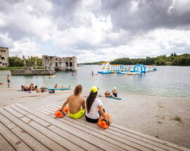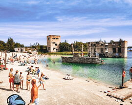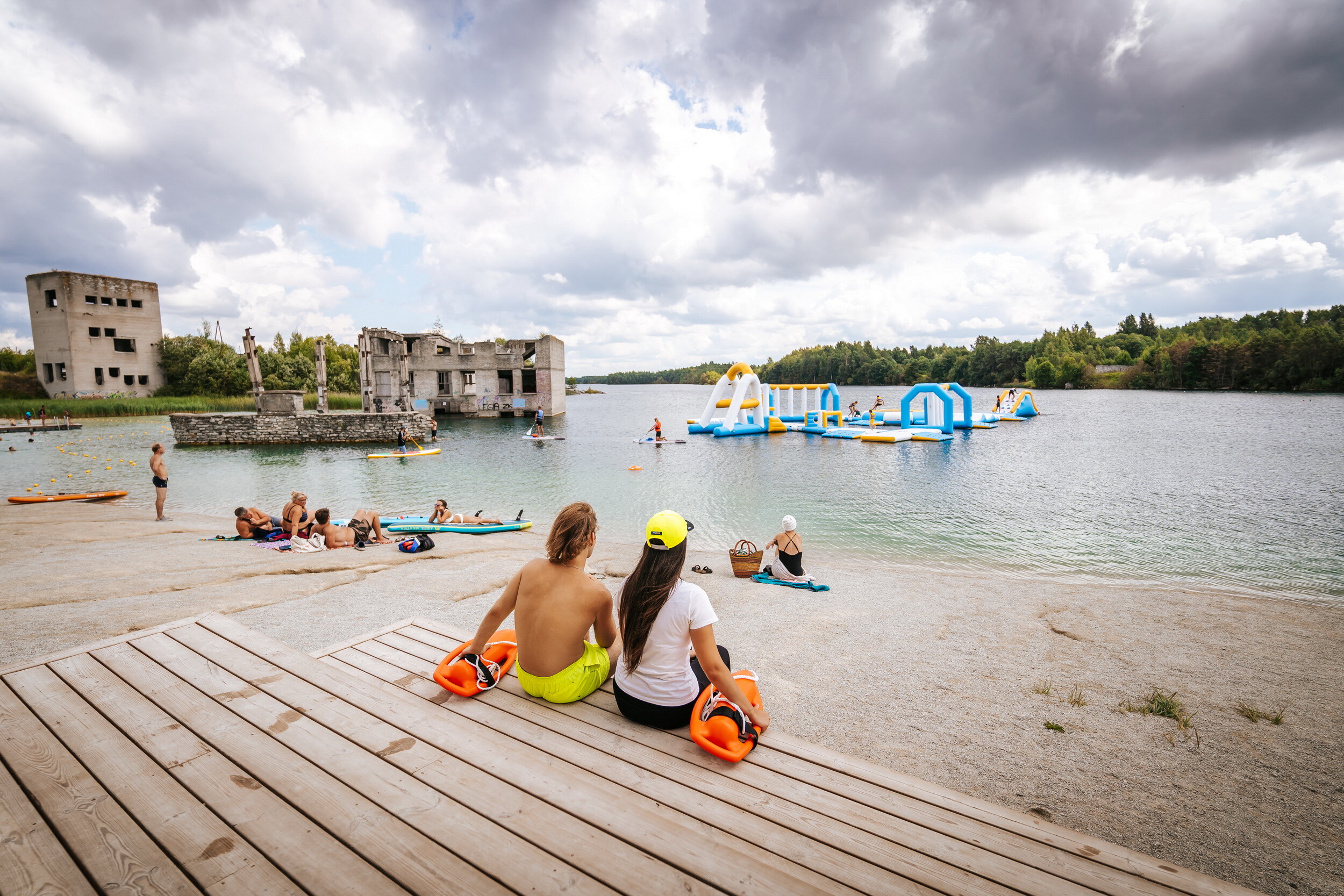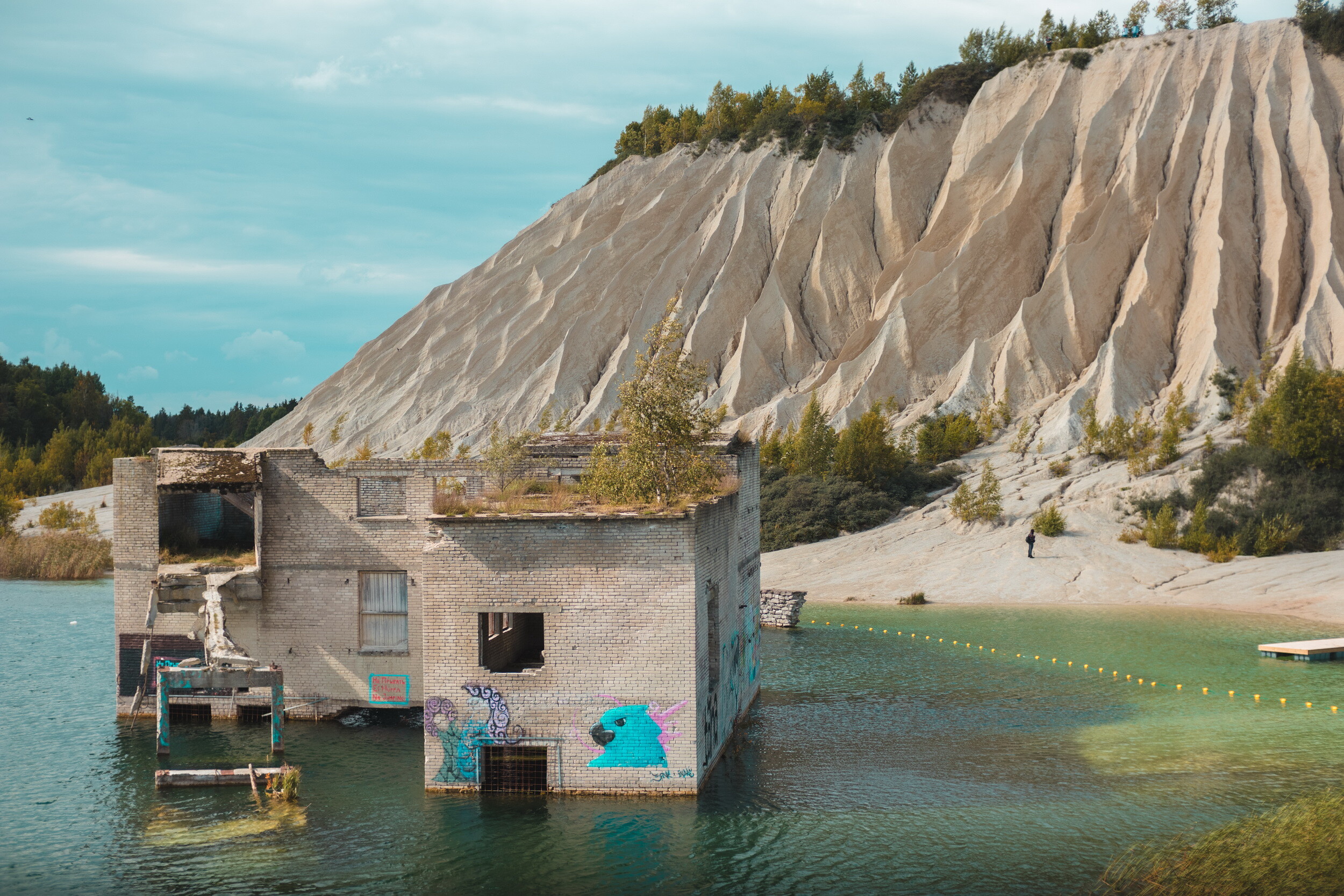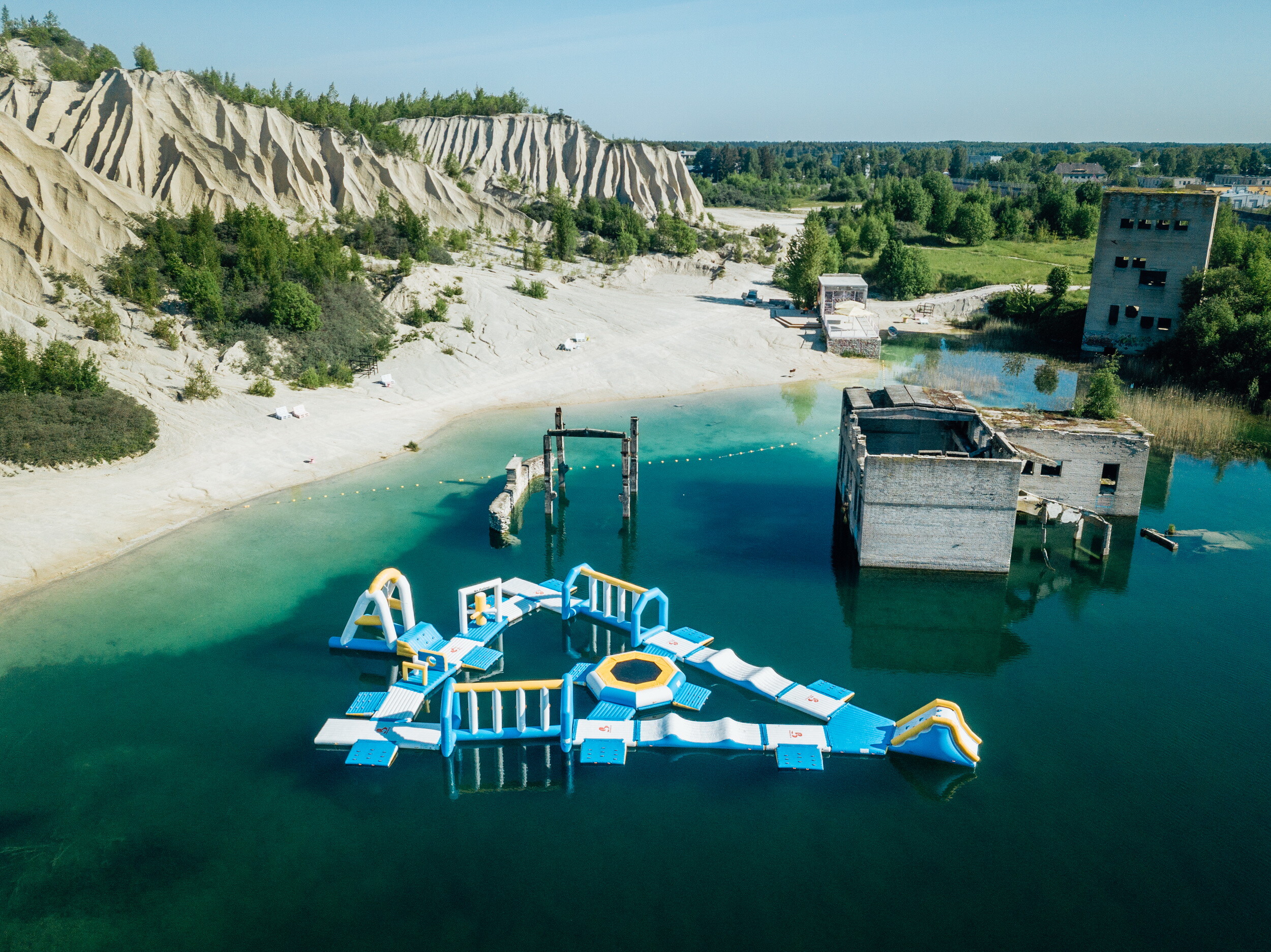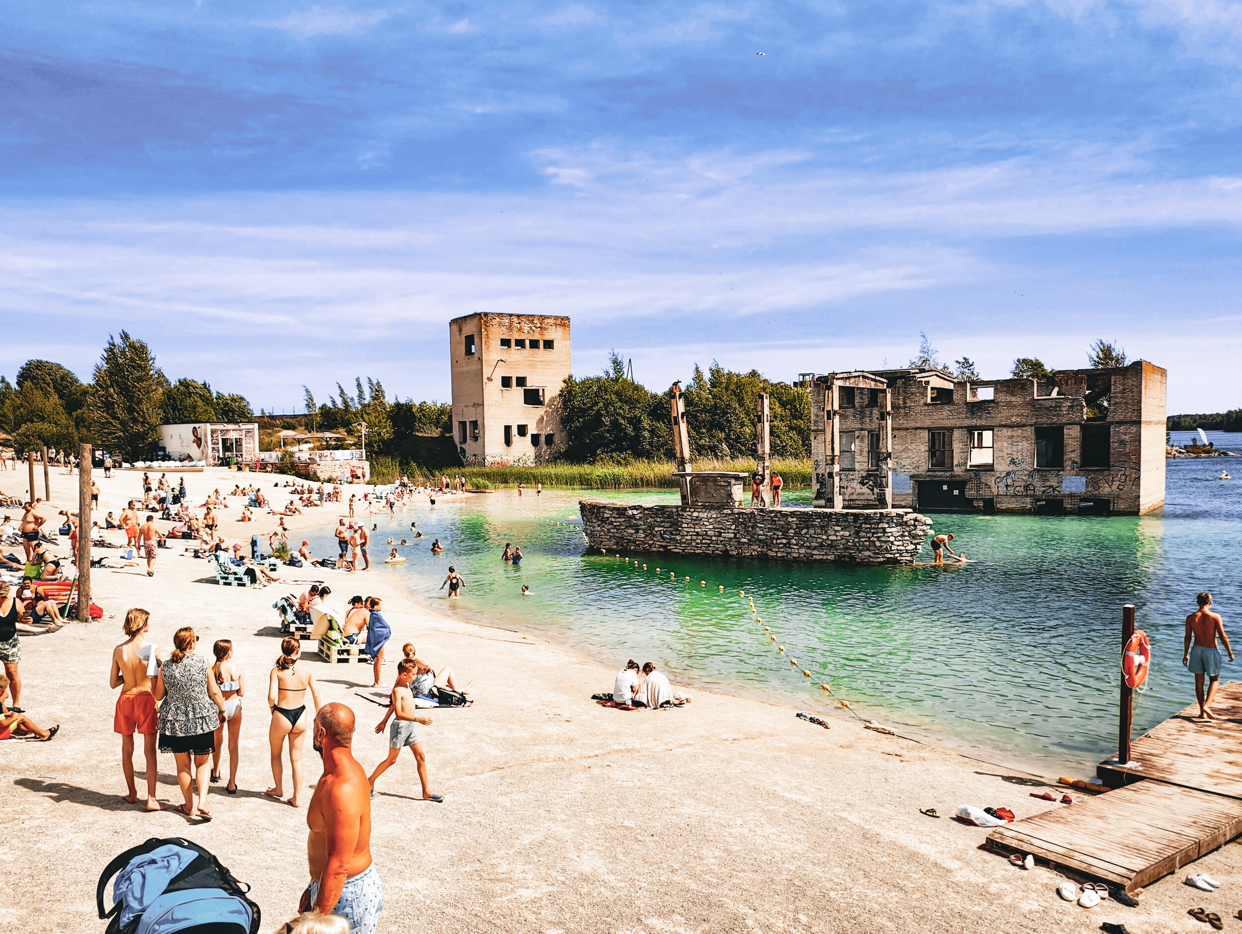 Despite its history, Rummu today has a surprisingly relaxed, almost holiday-like feel. There’s a beach along the quarry lake, places to grab an ice cream or a coffee, and the gentle hum of summer activity - people swimming, paddleboarding, or simply sunbathing at the foot of a former industrial relic. More adventurous visitors can hike up the sandy hills (carefully - it’s steeper than it looks), or even venture into the water for a closer look at what lies beneath.