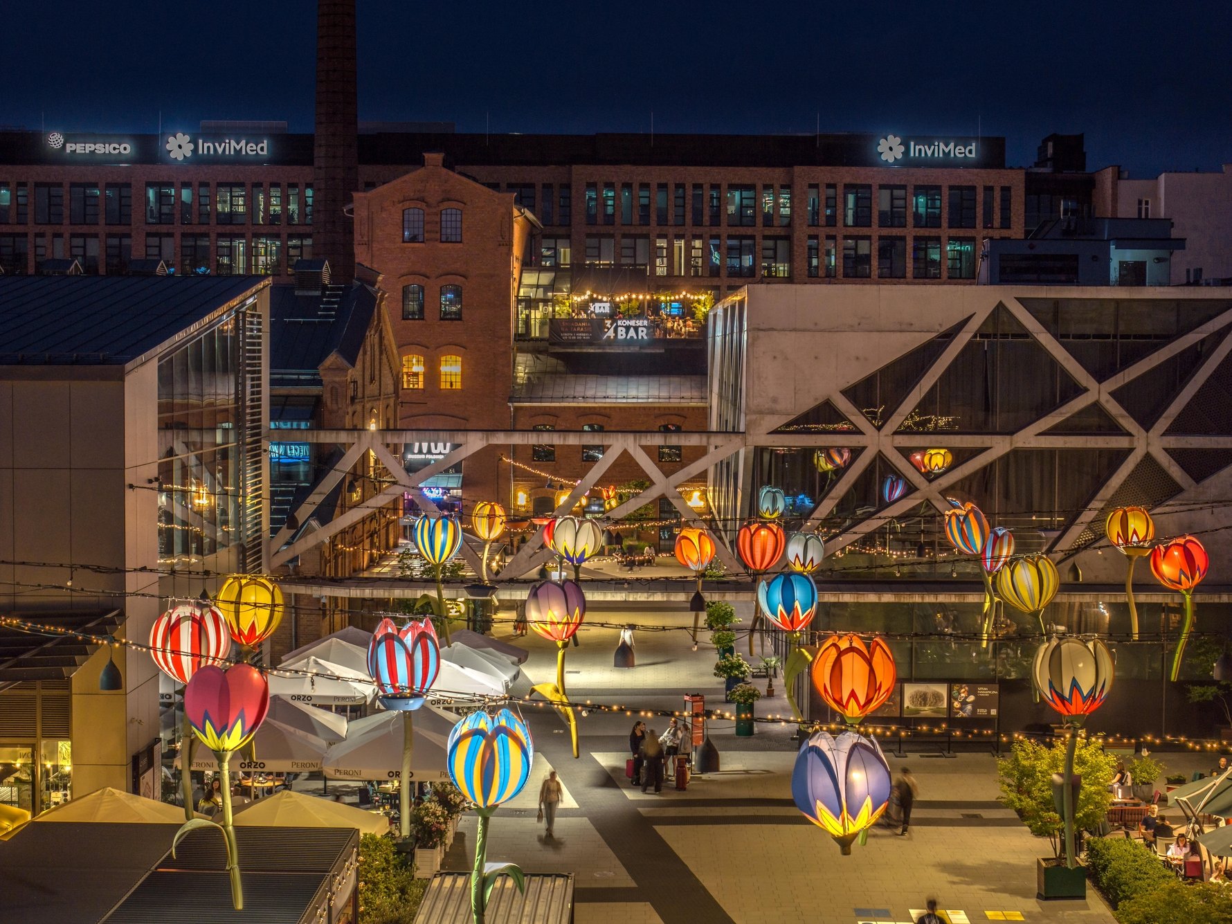 Now, among the 19th century buildings, you’ll find sleek glass structures, string lights and pops of greenery, along artistic decor like giant tulips by renowned artist Jarosław Koziara. In this hub of entertainment, you’ll also find numerous outdoor events throughout the year, from art exhibitions to theatre performances – there’s always something happening and it's easily found on koneser.eu.