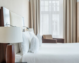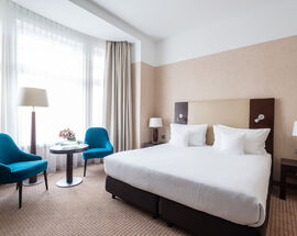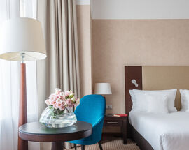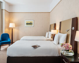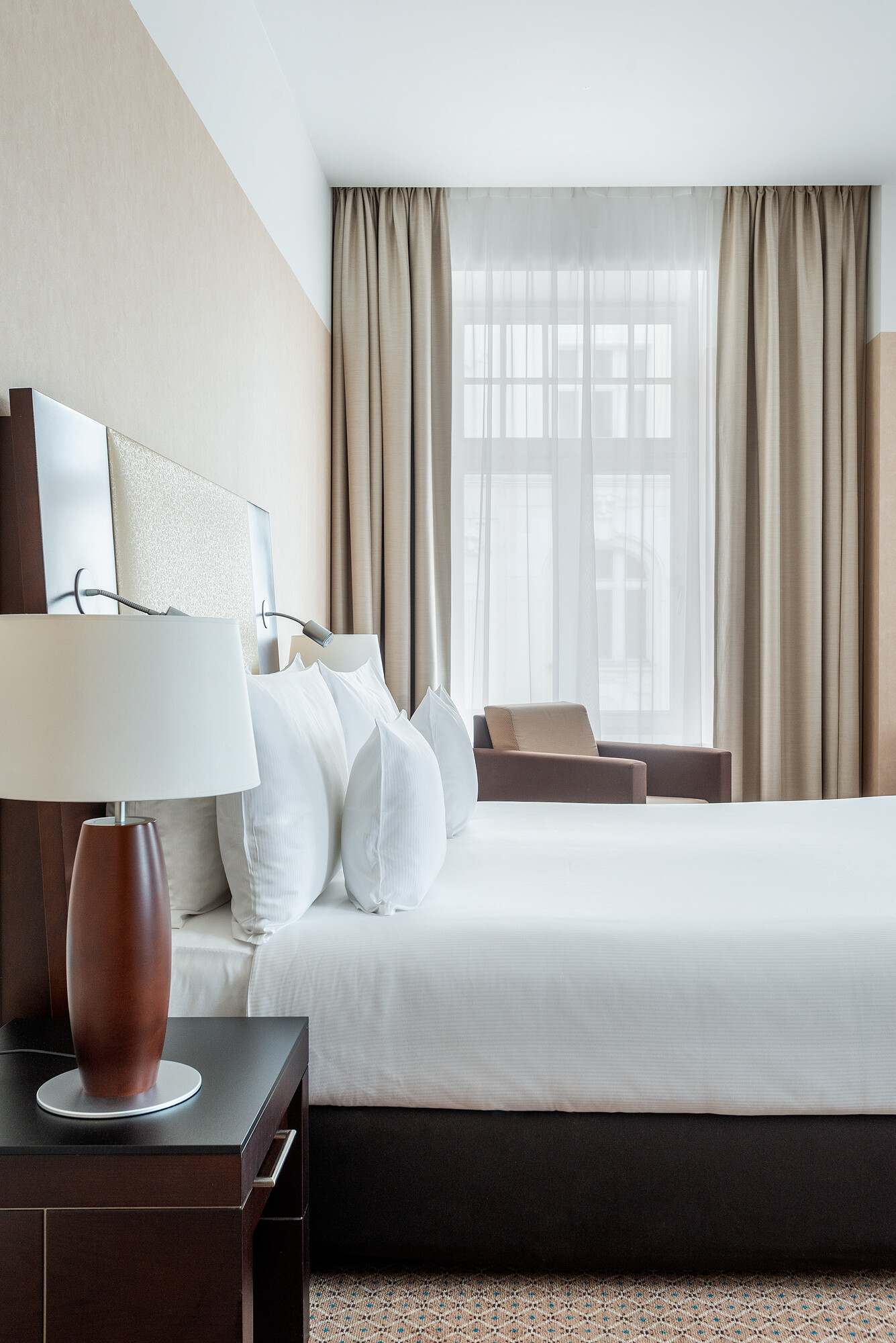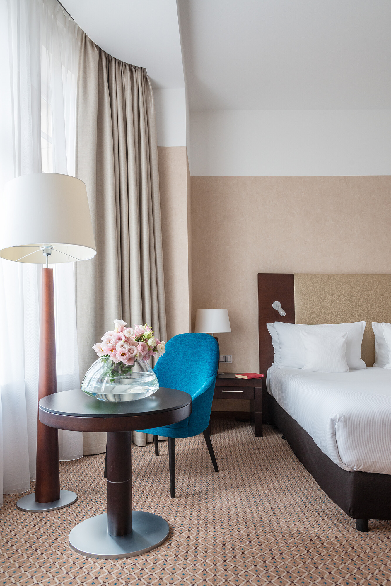 Top notch hotel, although a little more up-market than we would normally go. Get the breakfast buffet, it's pretty incredible... but it gets crowded so try to go early. We were facing the courtyard so there was no street noise, and on an upper floor so there was no banquet hall noise. Drawbacks: 1) Location - unless you're stepping into a taxi, the streets right outside can be a little bit intimidating. The roundabout is so big you have to go underground into the metro station just to cross the street. We're used to big metro stations, but not everyone is... so I thought I might mention it. 2) No free internet - I have little use for most services, but I guess I've gotten used to free internet in the room or public area. Since I don't use it much (just to check few things before and after a full day of exploring the city) it seemed like a hassle to debate the terms of the pay service. I would have much preferred having this service instead of a fitness room or room service.