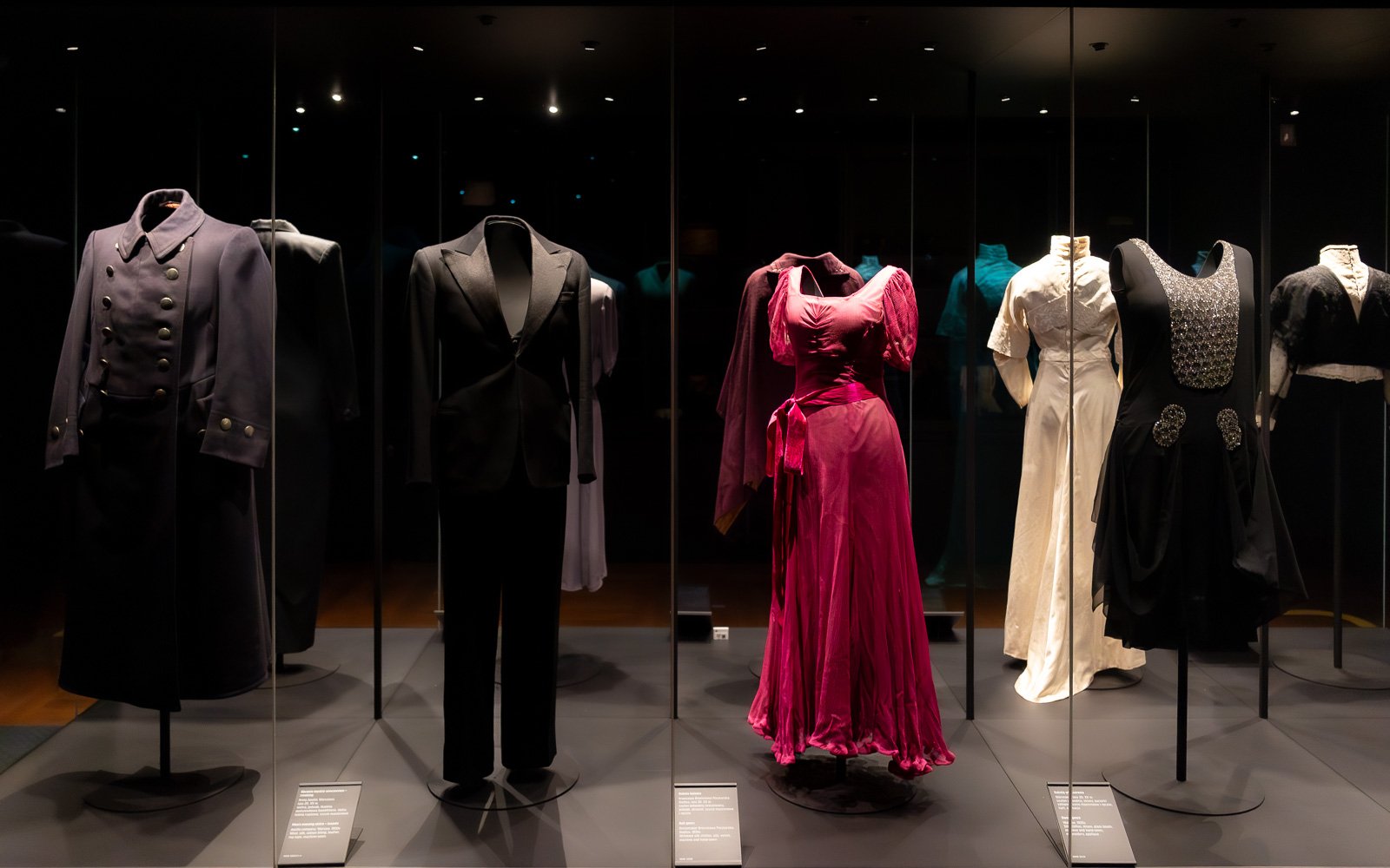 And the objects stretch before the modern era as well. One room features tons of pre-war dresses, suits and shoes that give an indication of what fashion looked like in previous centuries. A glass exhibit holds a piece of a robe excavated from the crypt of the last Mazovian dukes. In the same room, you can see the original, ornately painted ceiling that lived in the museum before the war.