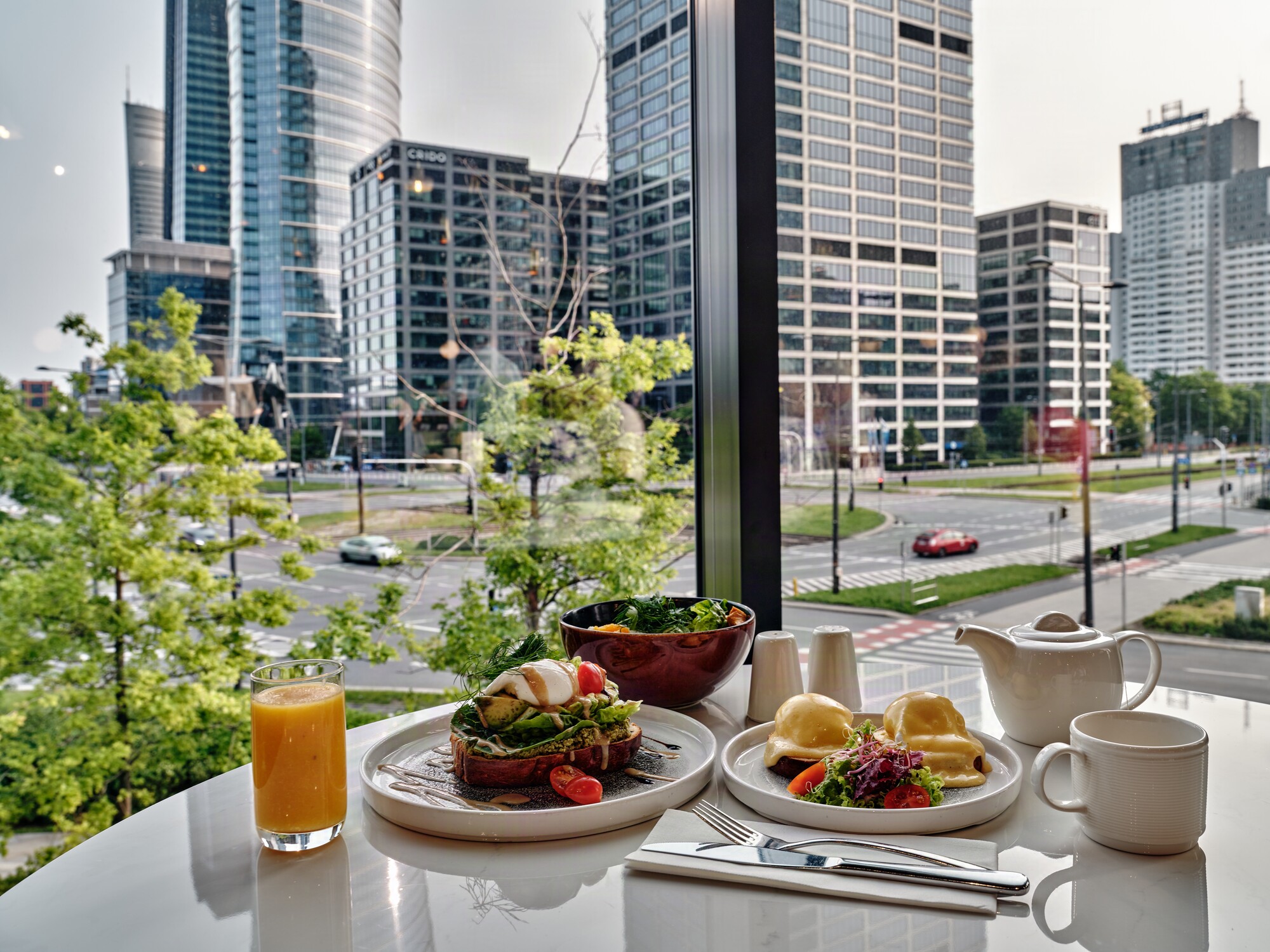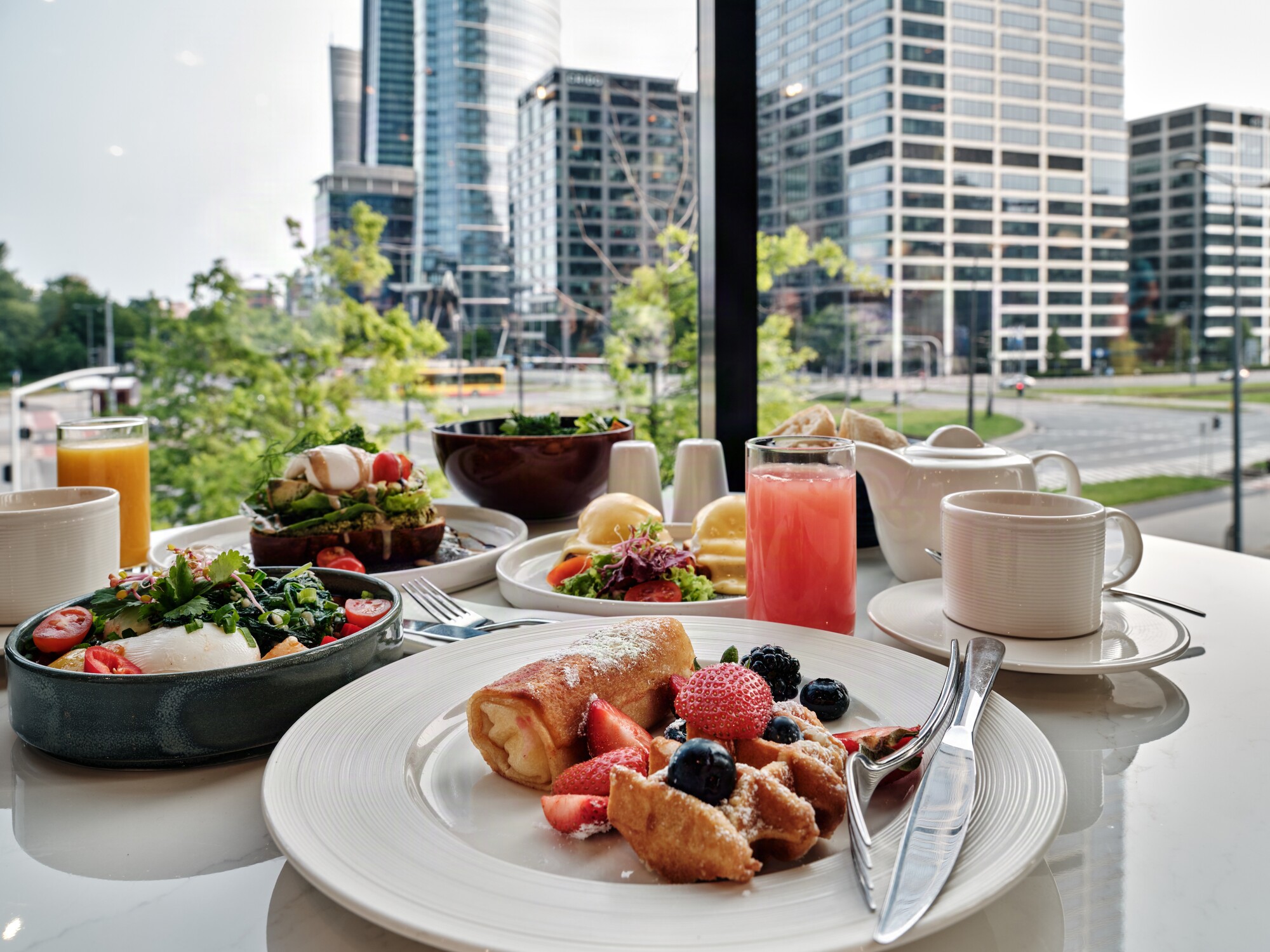 The breakfast menu includes favorites like omelettes with customizable add-ins, shakshouka, brioche with smoked salmon, avocado and fried egg, or oatmeal with coconut milk. For those seeking unique choices, Nova Wola offers baked sweet potatoes with yogurt, berries, and granola, as well as hummus with roasted vegetables, avocado and egg. Additionally, the restaurant stands out by offering entire pots of coffee, ensuring you have ample caffeine to energize yourself for the day ahead.