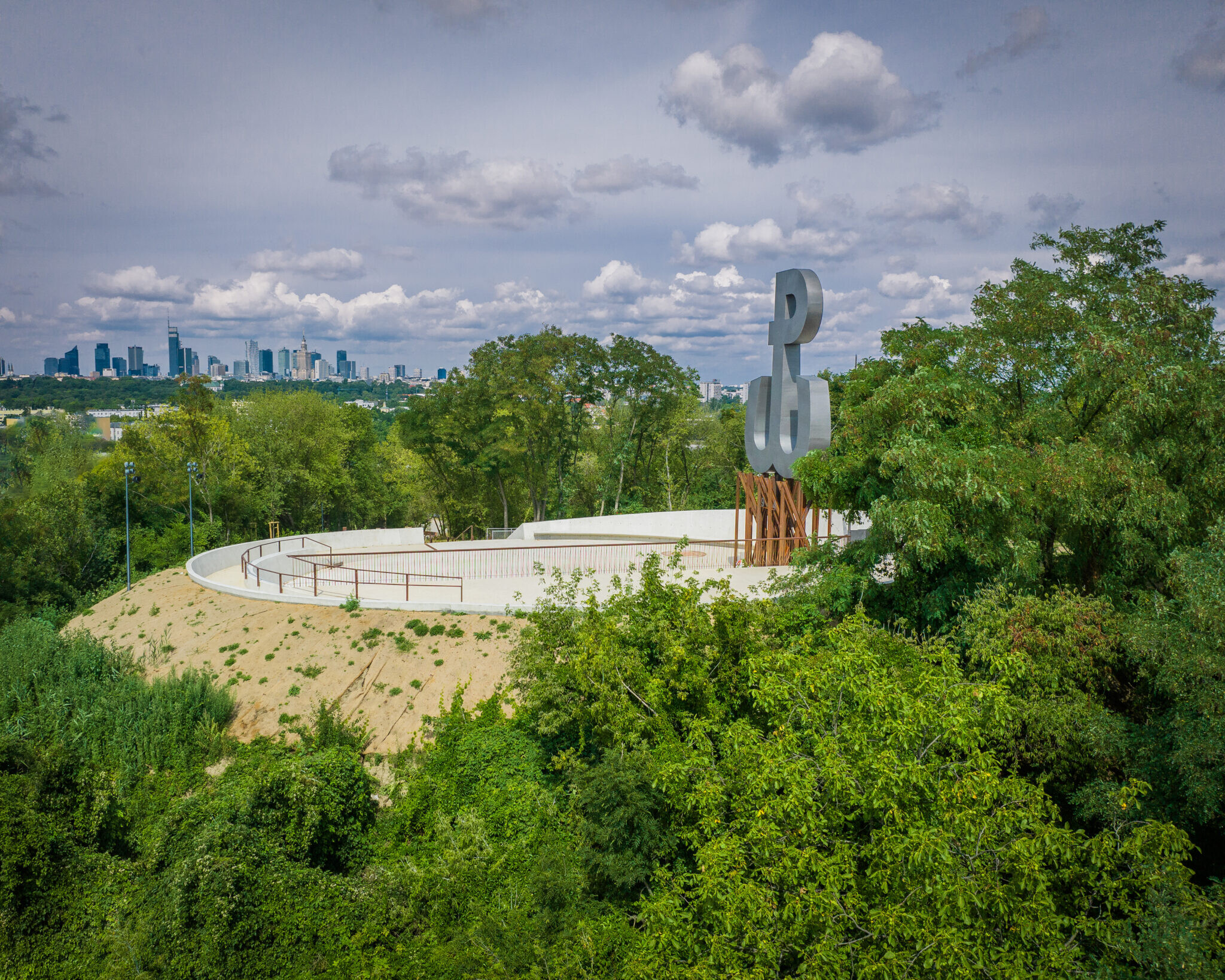 Visitors entering from Barycka Street can see an original historic exhibition about the reconstruction of Warsaw, along with information about the process. Find ruins of the original capital here as well. The Warsaw Uprising Mound in the park includes a two-level viewing platform with the renovated symbol of the Polish resistance, which is illuminated from Aug 1 to Oct 2 every year in honor of the uprising. On your way up the mound, find stairs with places to rest and newly built ravines with walls of concrete that reference the reconstruction of the city.