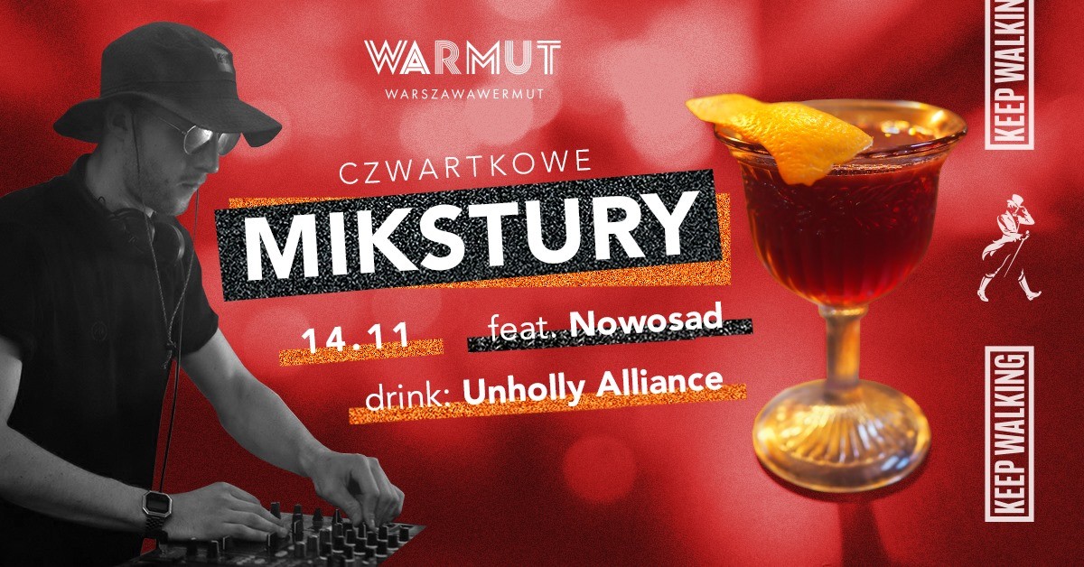 Come and taste our incredible Unholy Alliance drink at an incredible price - 15 pln! Imagine a taste of Scotland, Italy and France mixed together in one glass! Sip it while listening to music provided by DJ Nowosad. Every Thursday is an opportunity to experience perfectly selected drinks complemented by the best, carefully chosen music.