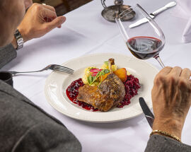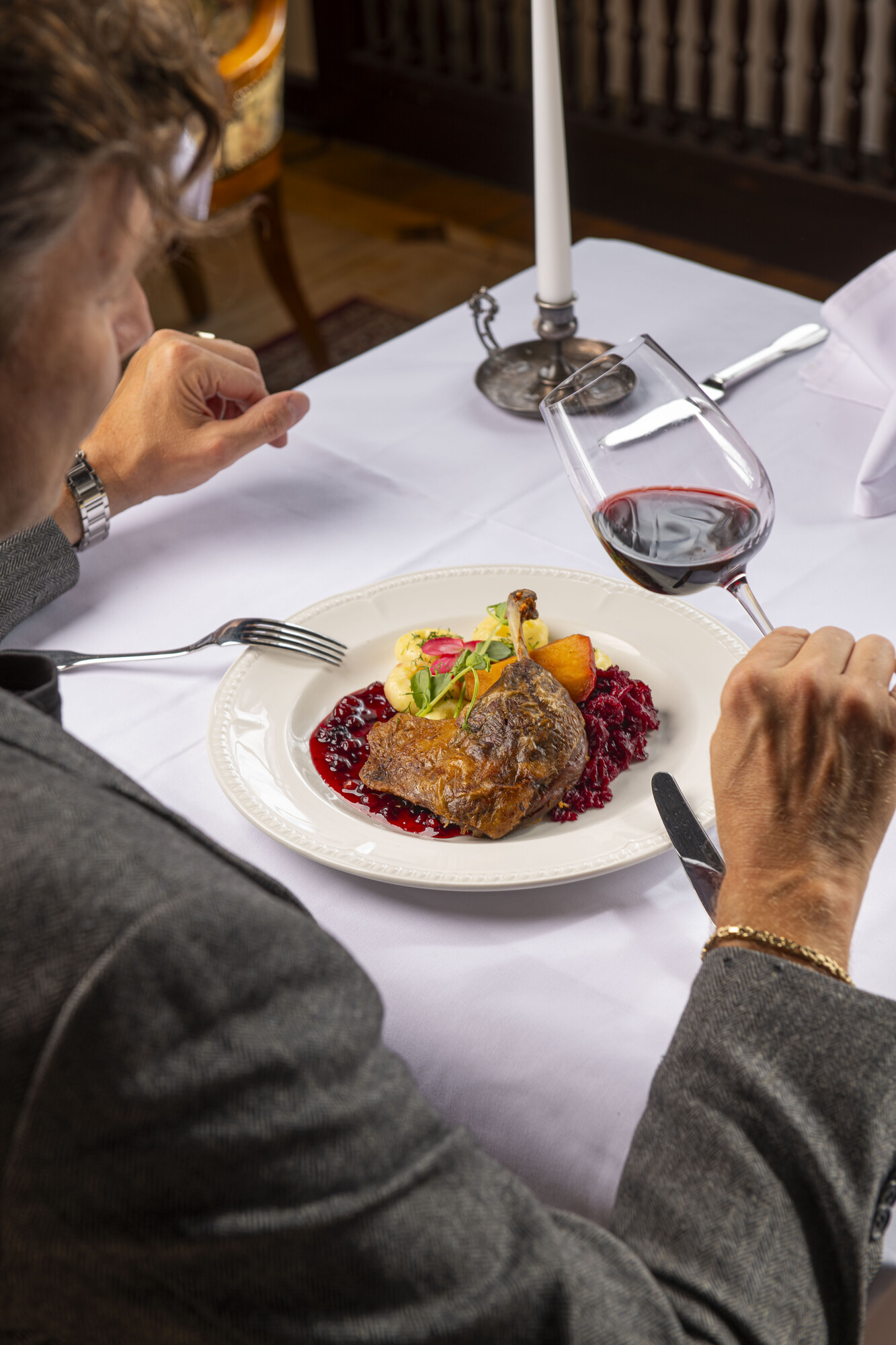 The signature duck baked with beetroot, fried apples and cranberry sauce, and the Angus steak with green pepper are just two of the winning dishes on the menu, and we have to mention the outstanding wine list!