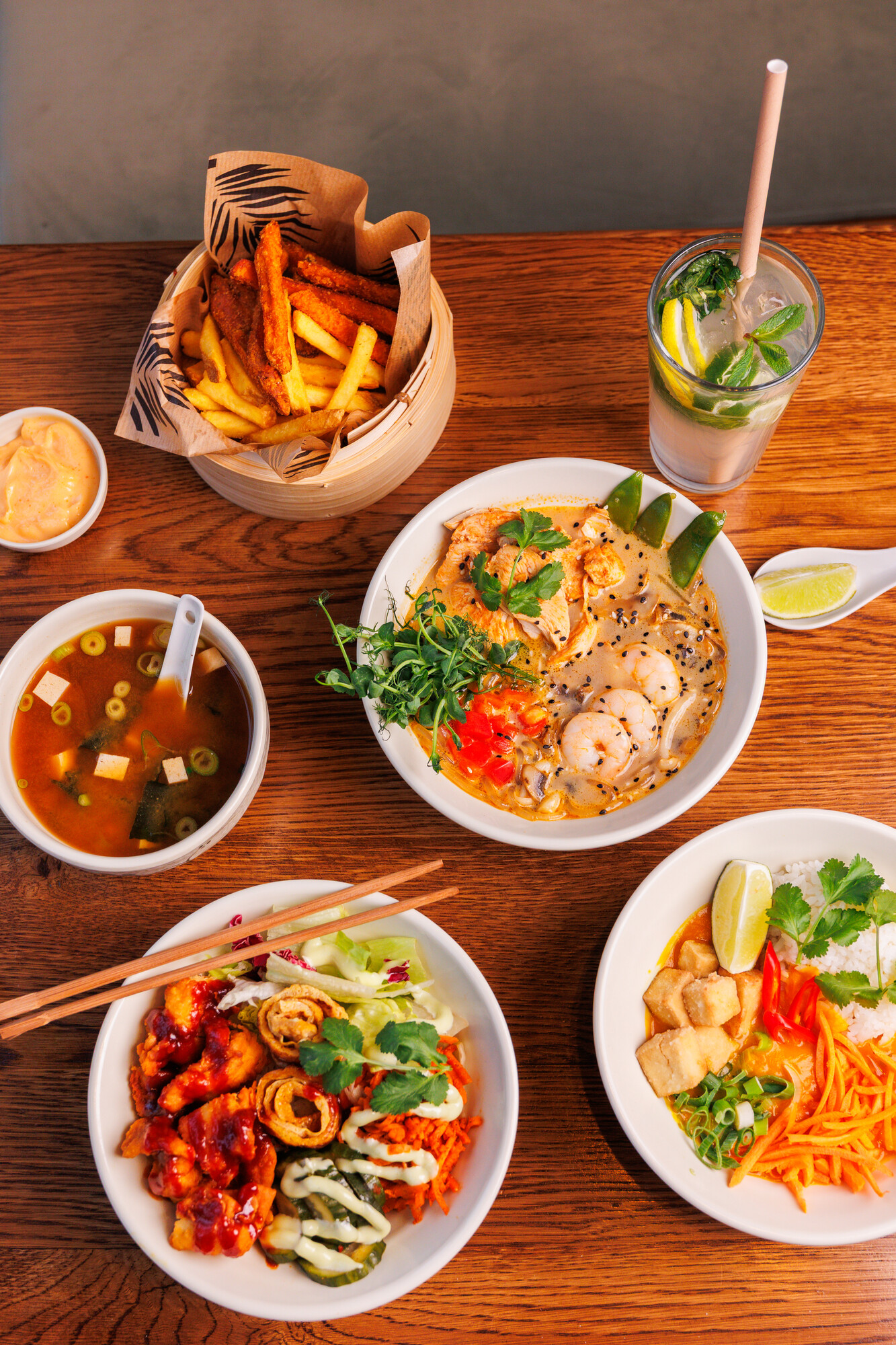 Woosabi isn't just confined to their indoor jungle. Additionally, on weekends you can also enjoy breakfast, with a rich menu that will satisfy even the most demanding guests. The offer includes, among others, a breakfast plate, avocado or bacon toast, as well as sweet French toast or a granola bowl. And on top of that, coffee or tea for only 3zł! Evenings here are long, and you can spend them enjoying signature cocktails, craft beers and your favourite dishes full of oriental flavours.