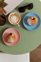 Meet Mia is known for its playful yet refined take on carnival doughnuts, combining classic favourites with bold, dessert-inspired flavours. The selection includes a traditional apricot-filled krafna (€2.20) alongside more indulgent options such as pistachio with pistachio cream and white chocolate glaze (€3.00), chocolate–hazelnut with chocolate glaze and crunchy hazelnut pieces (€2.80), strawberry–vanilla with lemon-infused vanilla cream and raspberry sugar (€2.80), almond–caramel with Amaretto notes and salted vanilla caramel (€2.80), and vanilla–chocolate with chocolate fudge and chocolate glaze (€2.80) — making it a popular stop during carnival season.